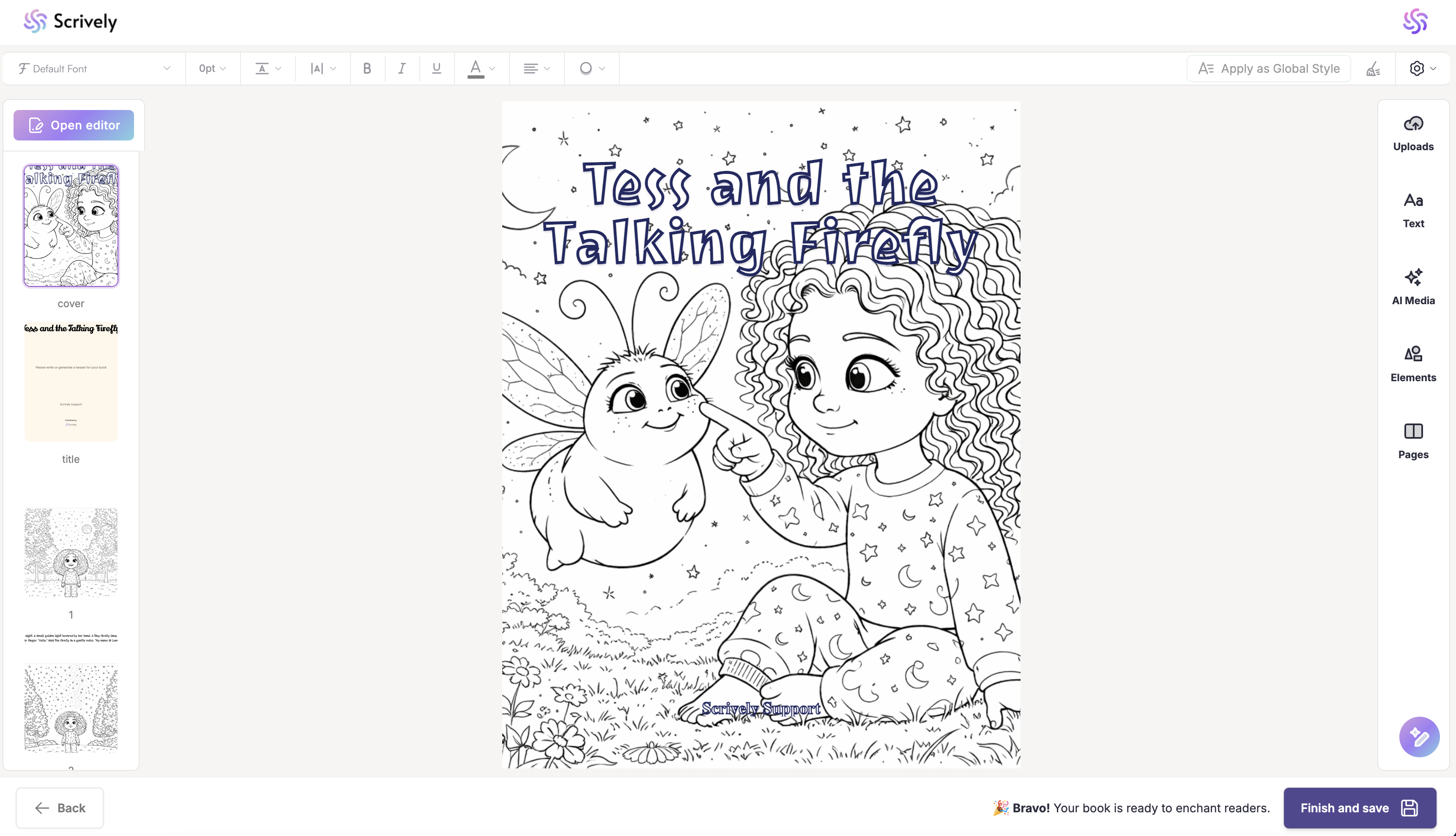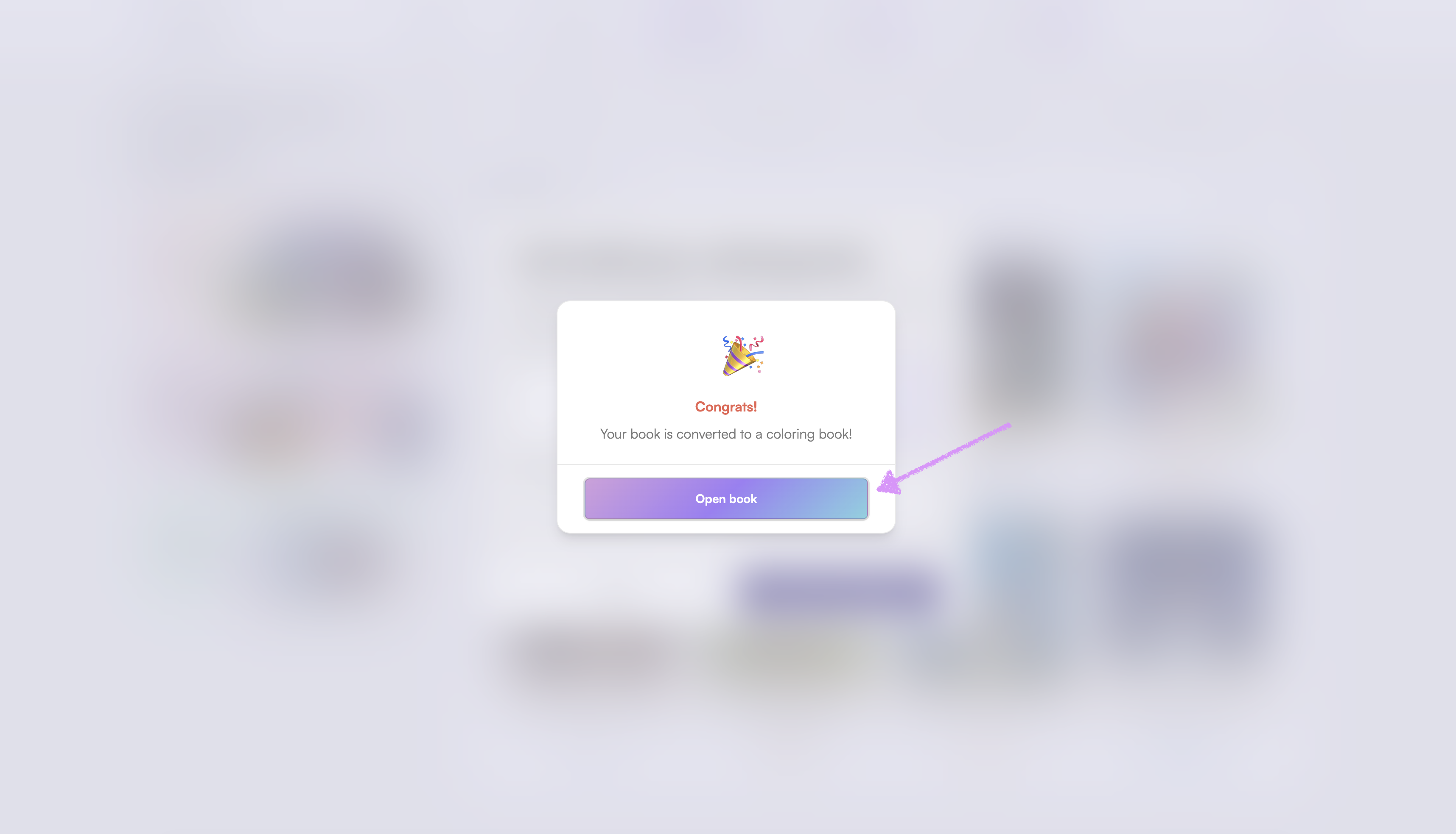 Congratulations! Your storybook has been converted into a coloring book. Click on "Open book" to view it.