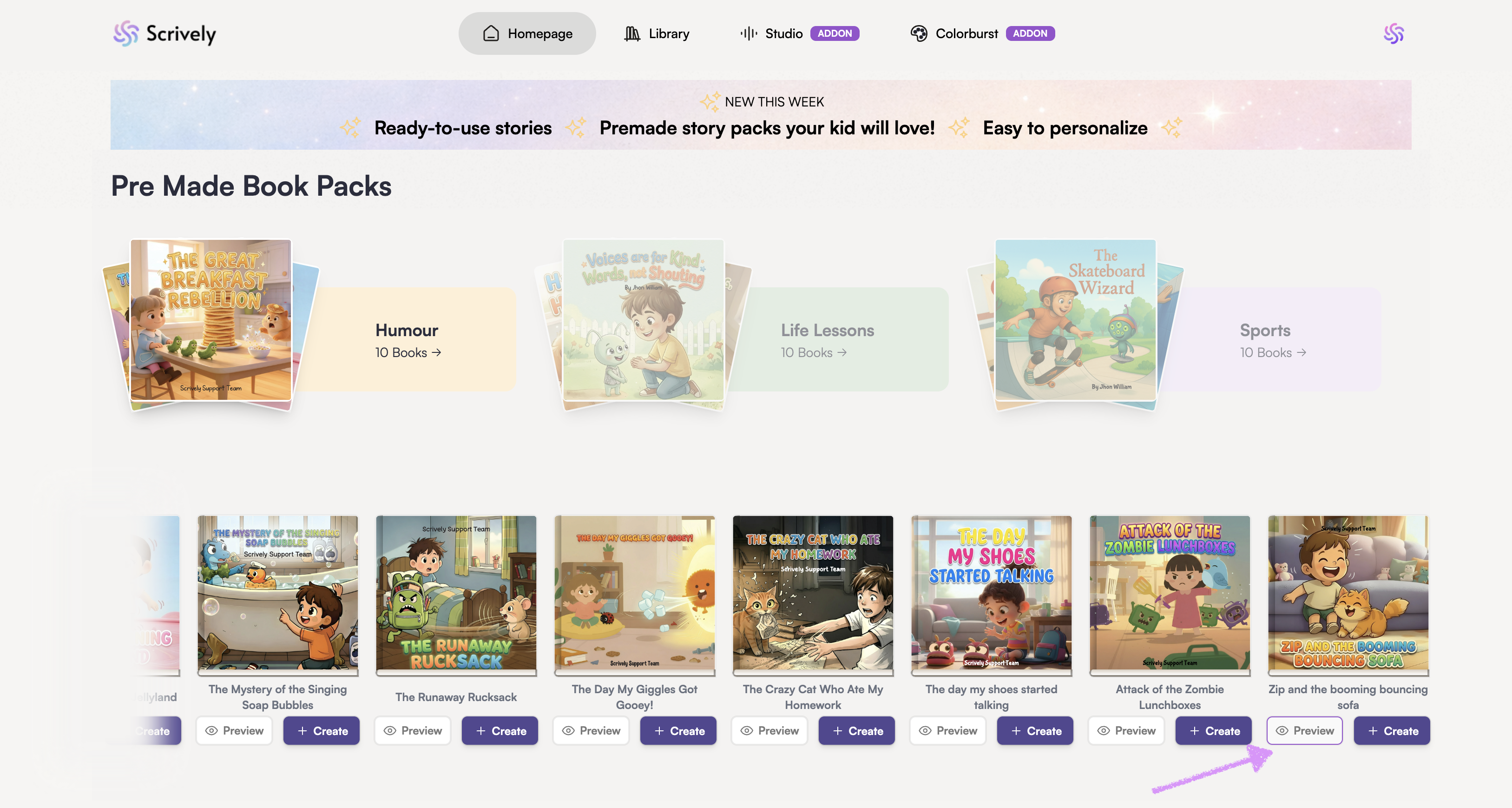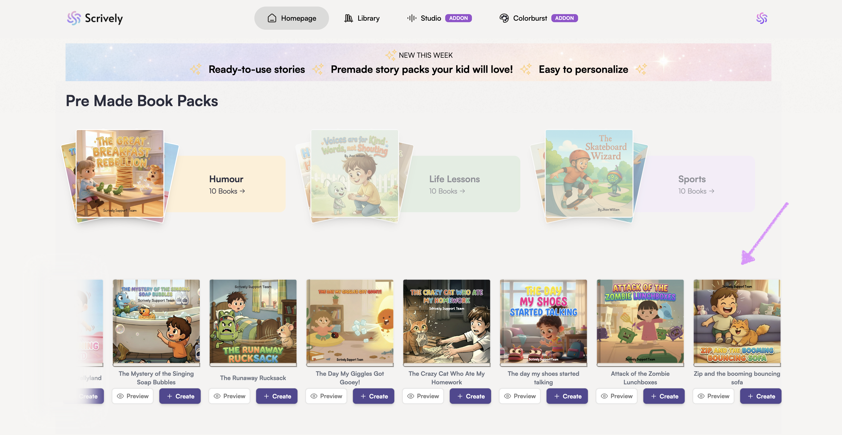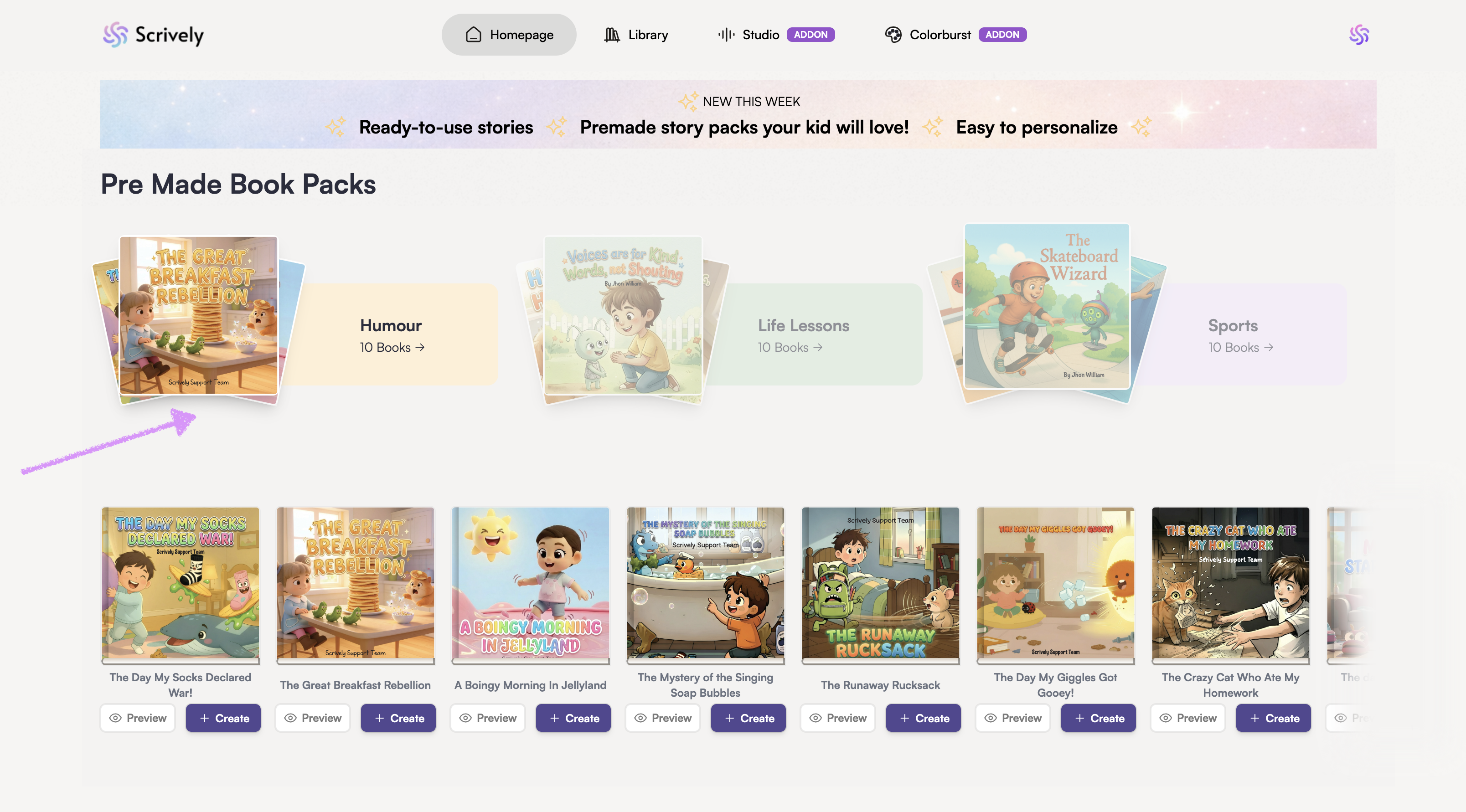 Click on a book pack to view and explore the available book templates.