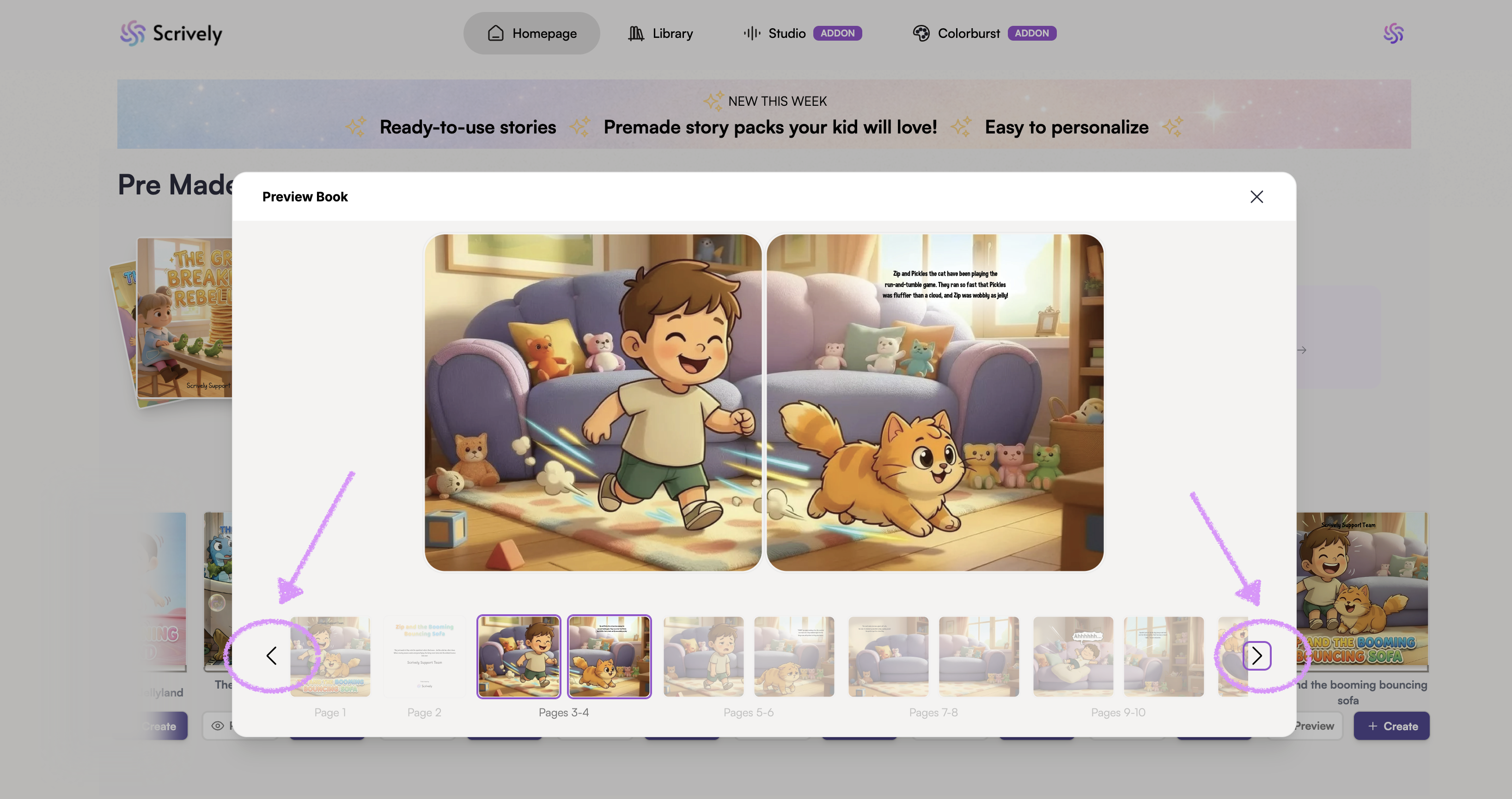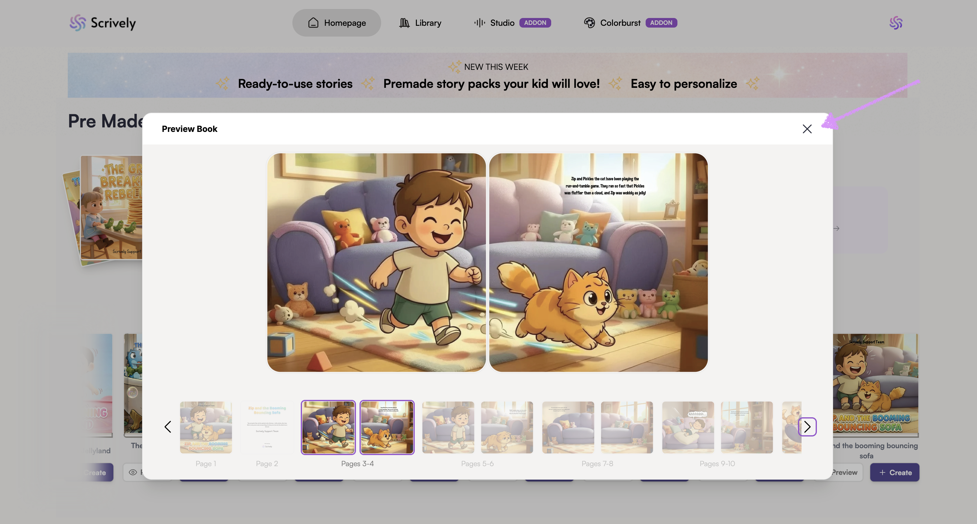 The premade books story builder will open.