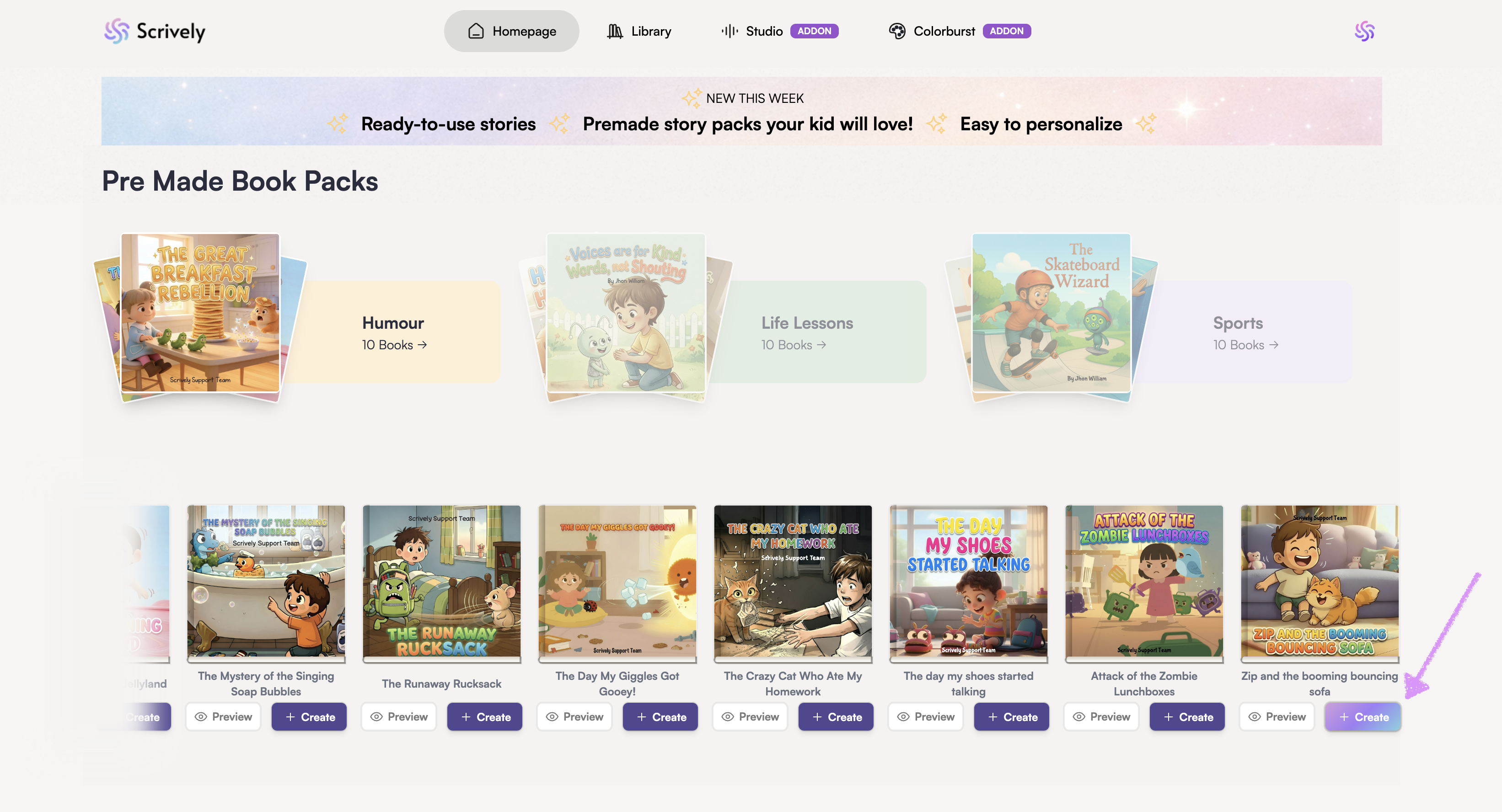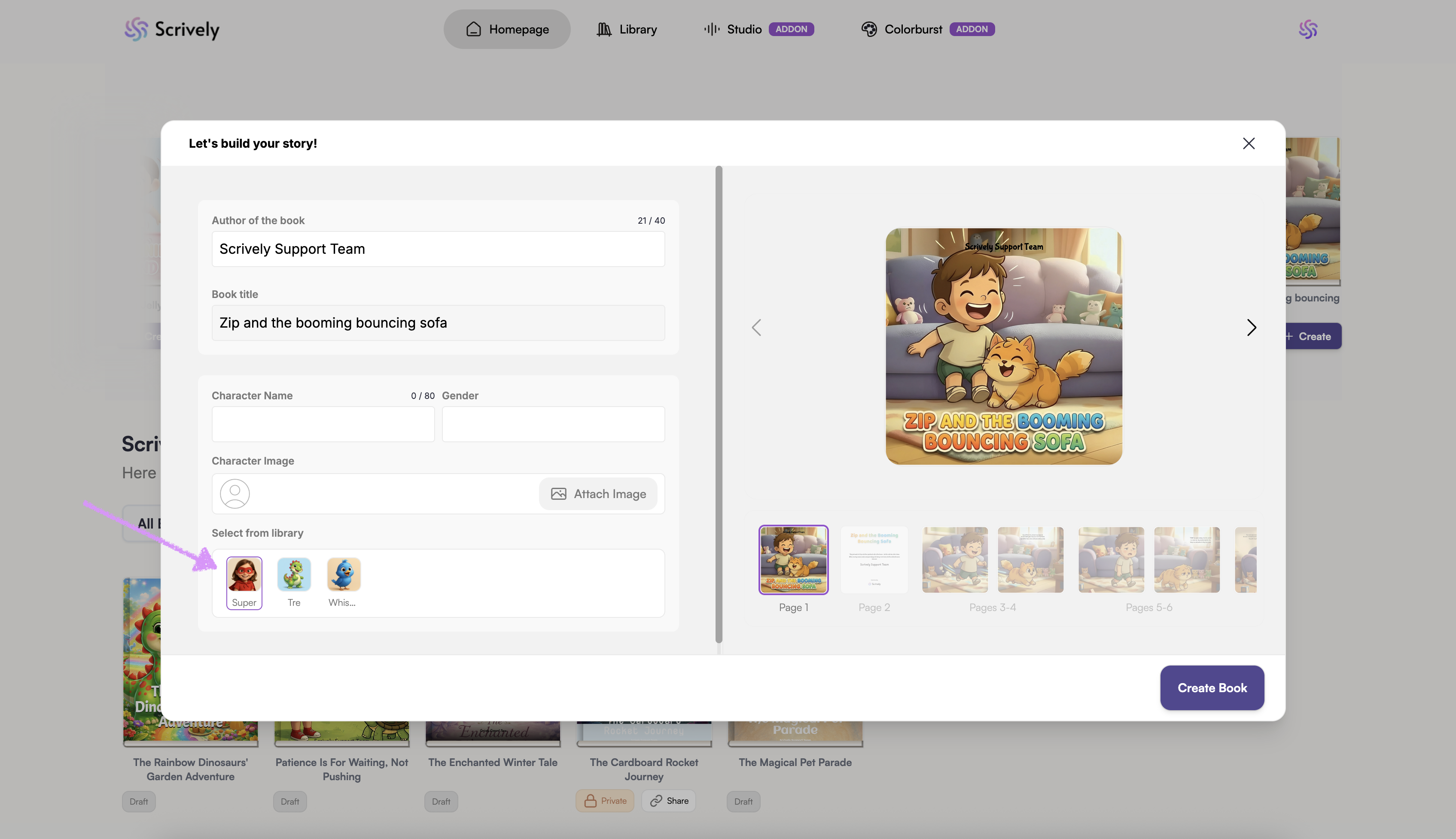 Ready to use a premade book? Click on "Create."