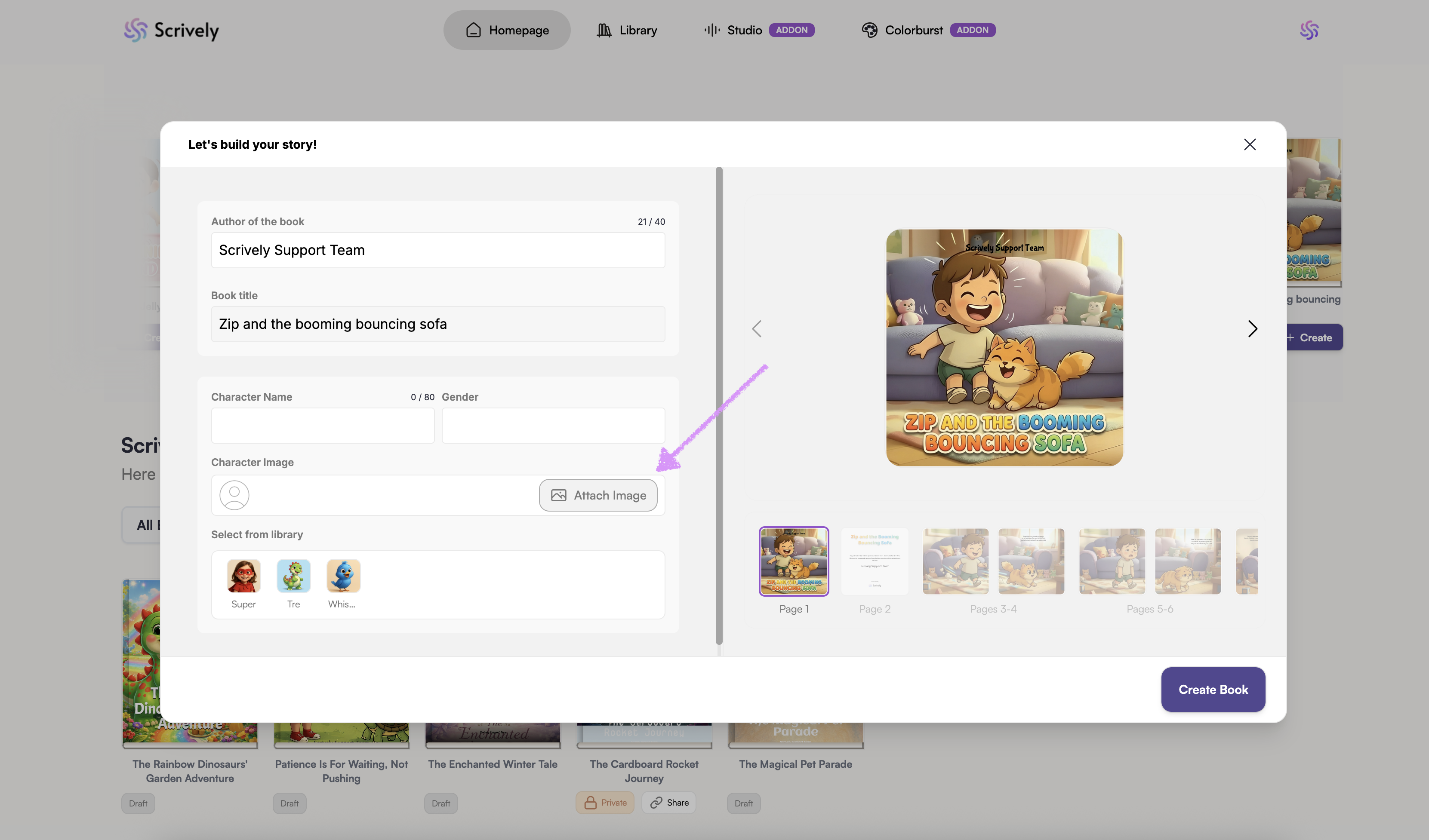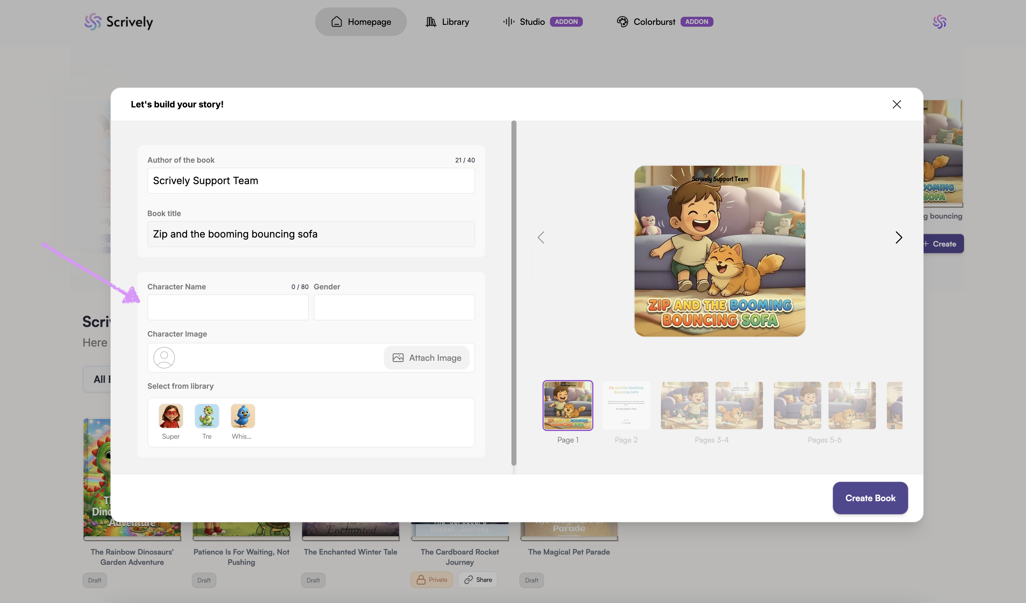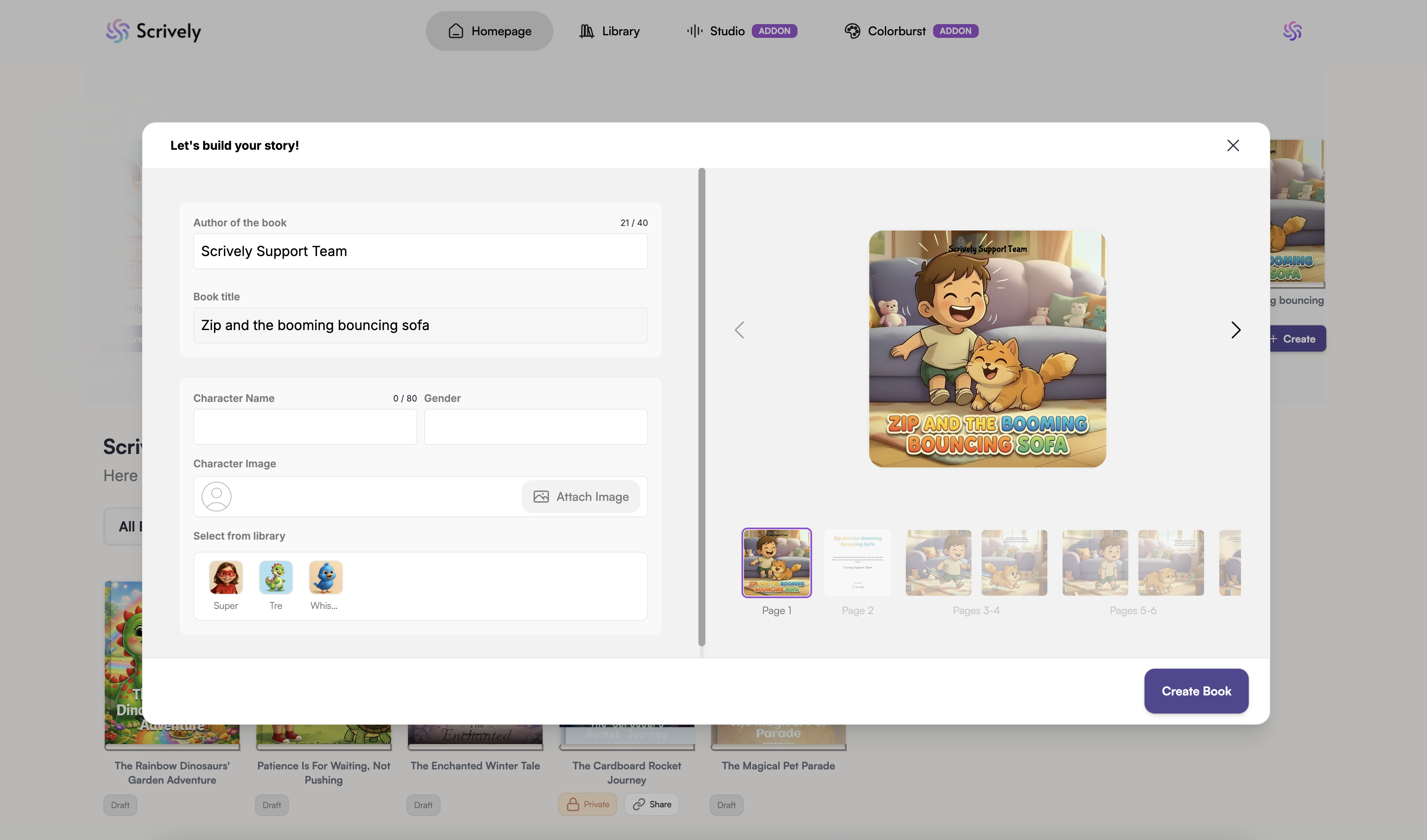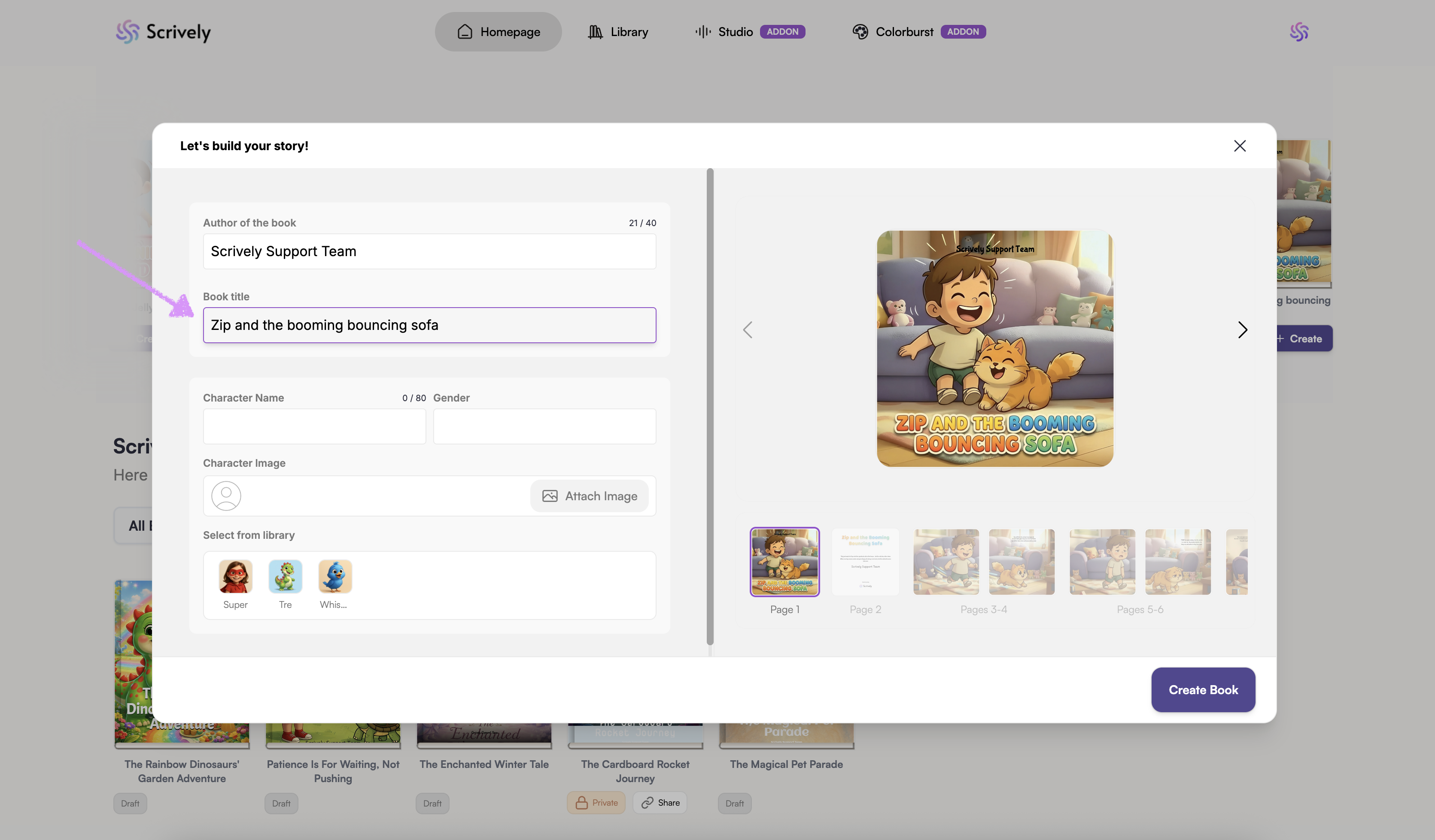 Scrively will take a few moments to think and create the book.