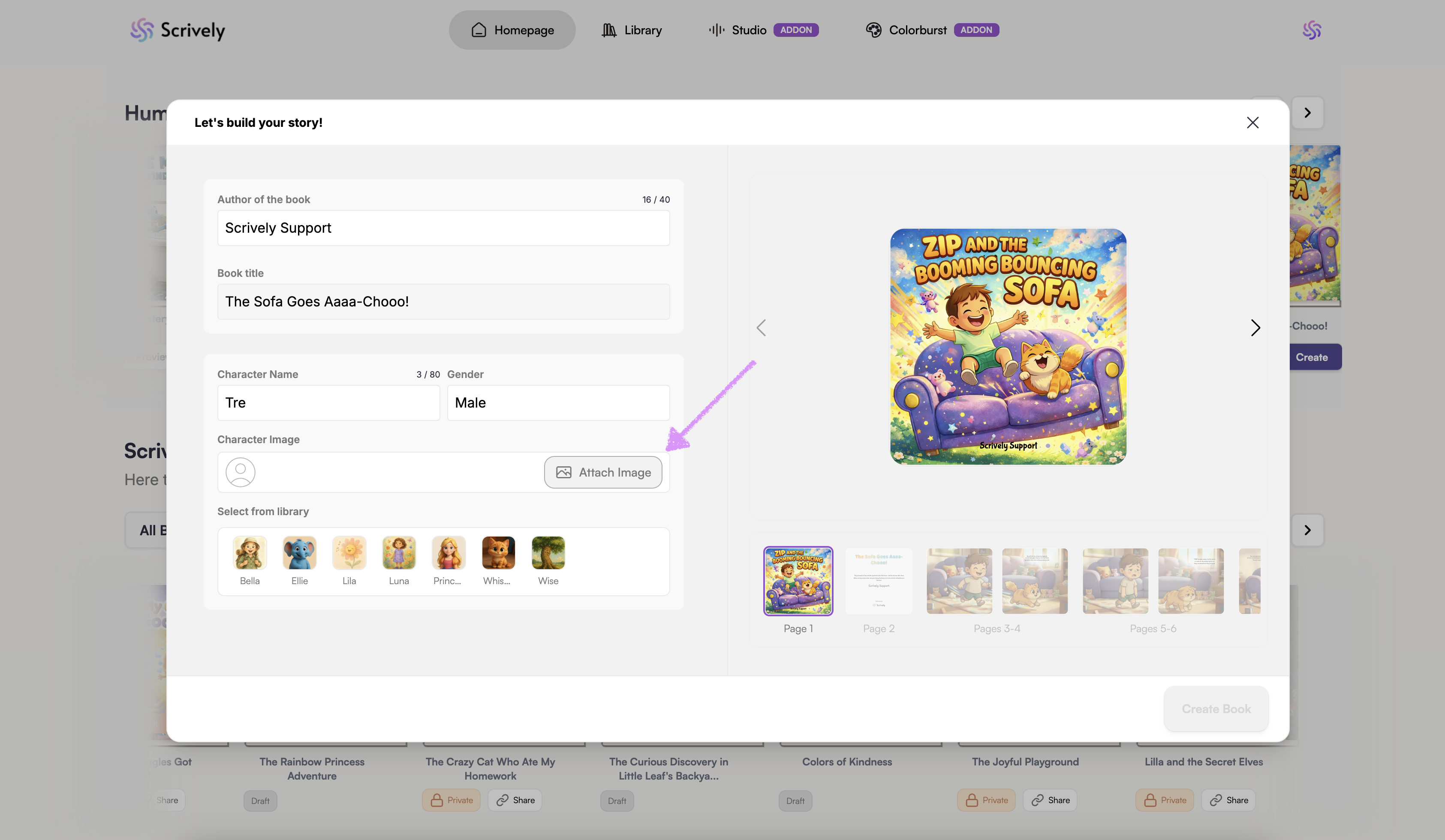 Note: If you upload a character’s image without specifying a name or gender first, these details will automatically be prefilled based on the image.Click on "Attach Image" to add the character's image from your device.