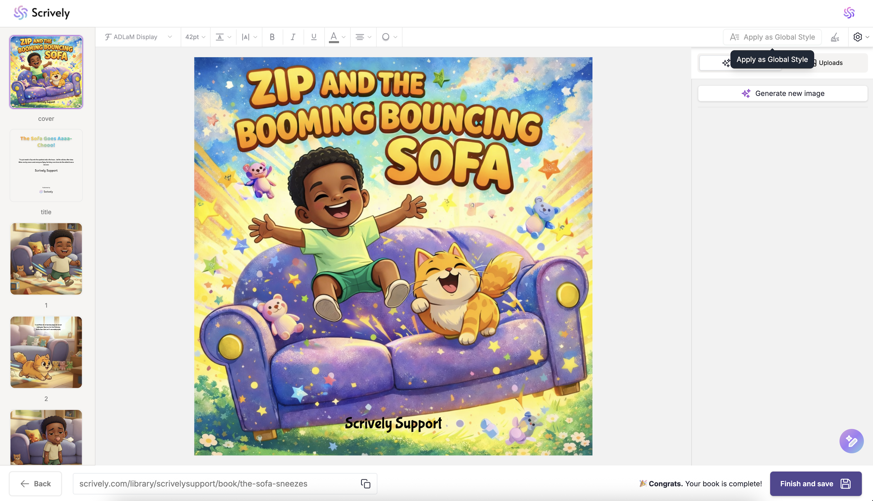 Kids love hearing stories, but they love them even more when they’re the star! Scrively makes it easy using professionally designed premade book templates. Whether it’s a children’s book or a short story, these templates give you a beautiful foundation you can easily customize. Create a storybook where your child’s name, personality, and imagination come to life on every page. It’s the perfect gift for birthdays, bedtime, or anytime you want to make them feel special.
