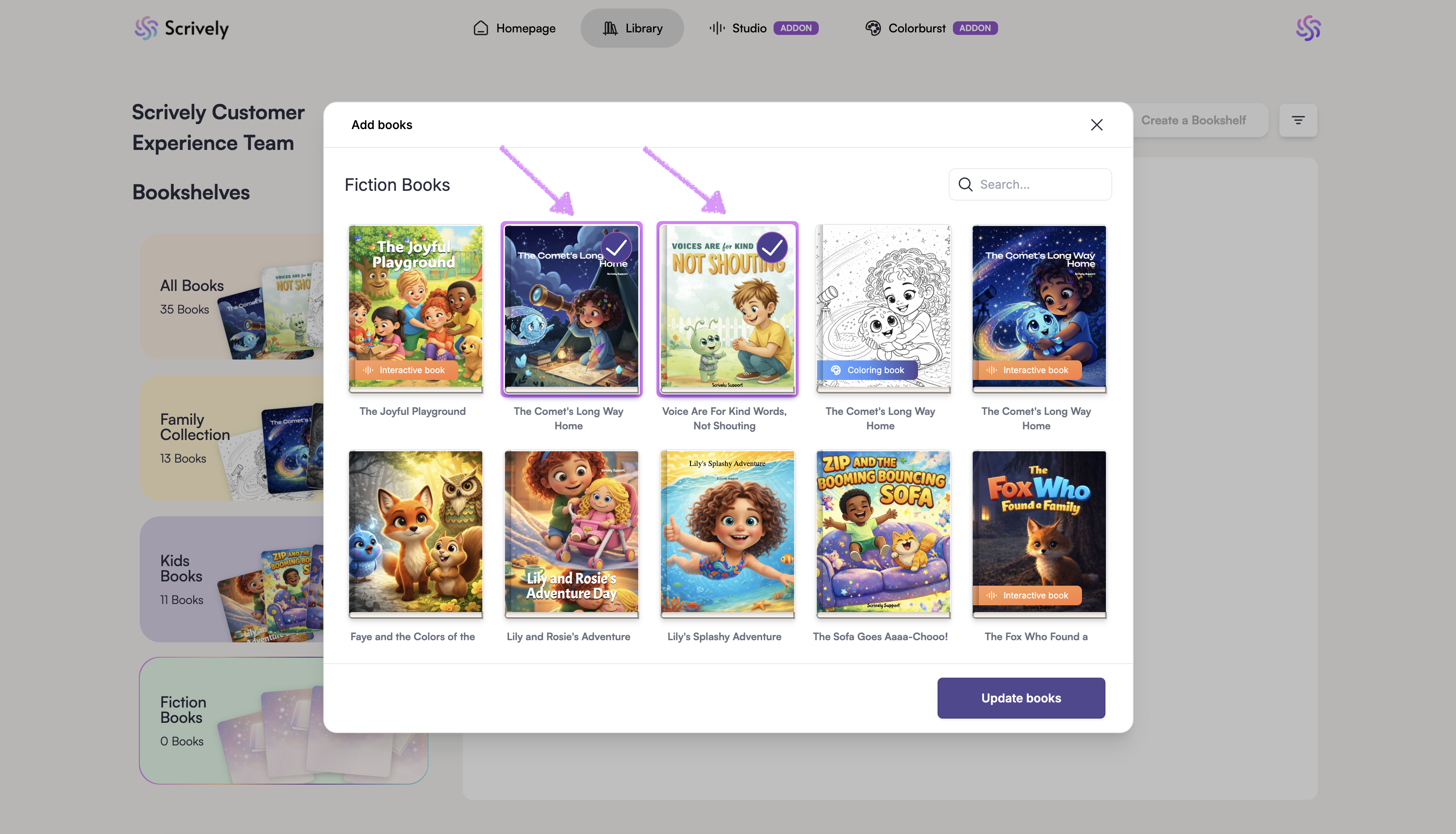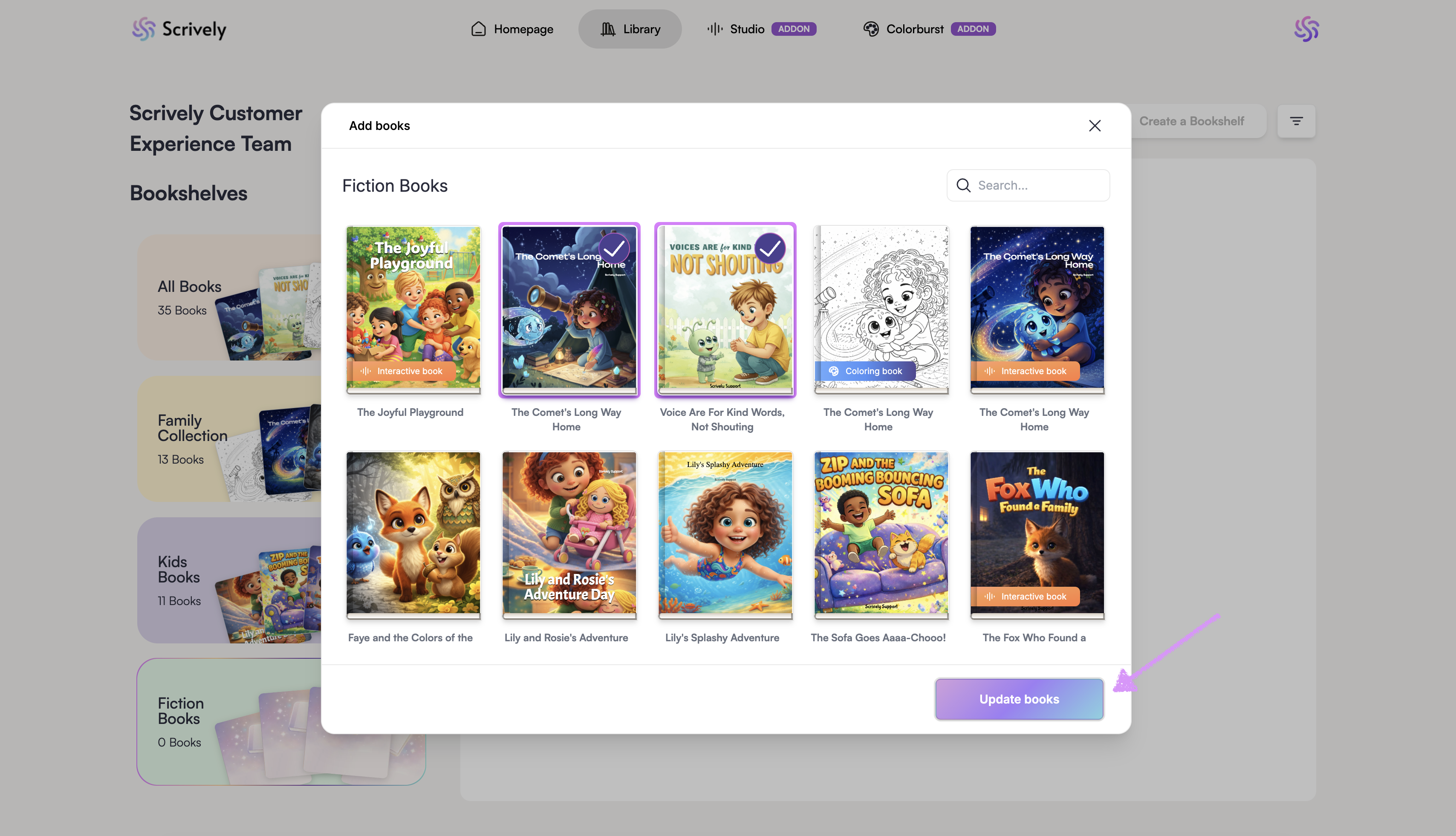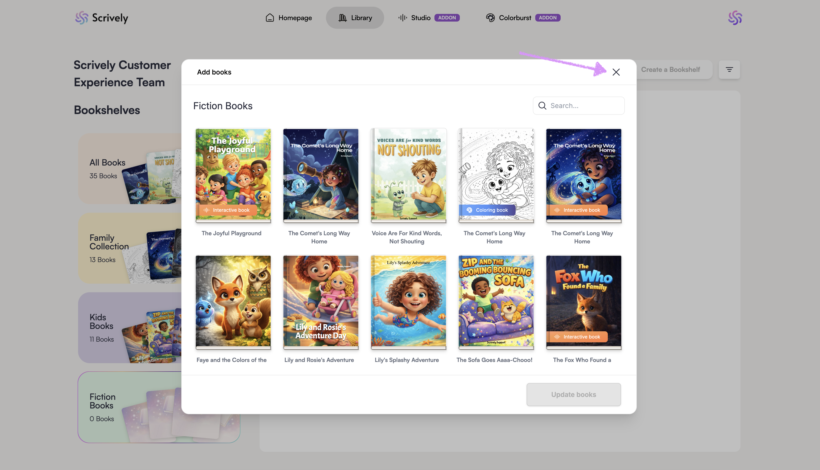 A modal will be displayed with all of your books.