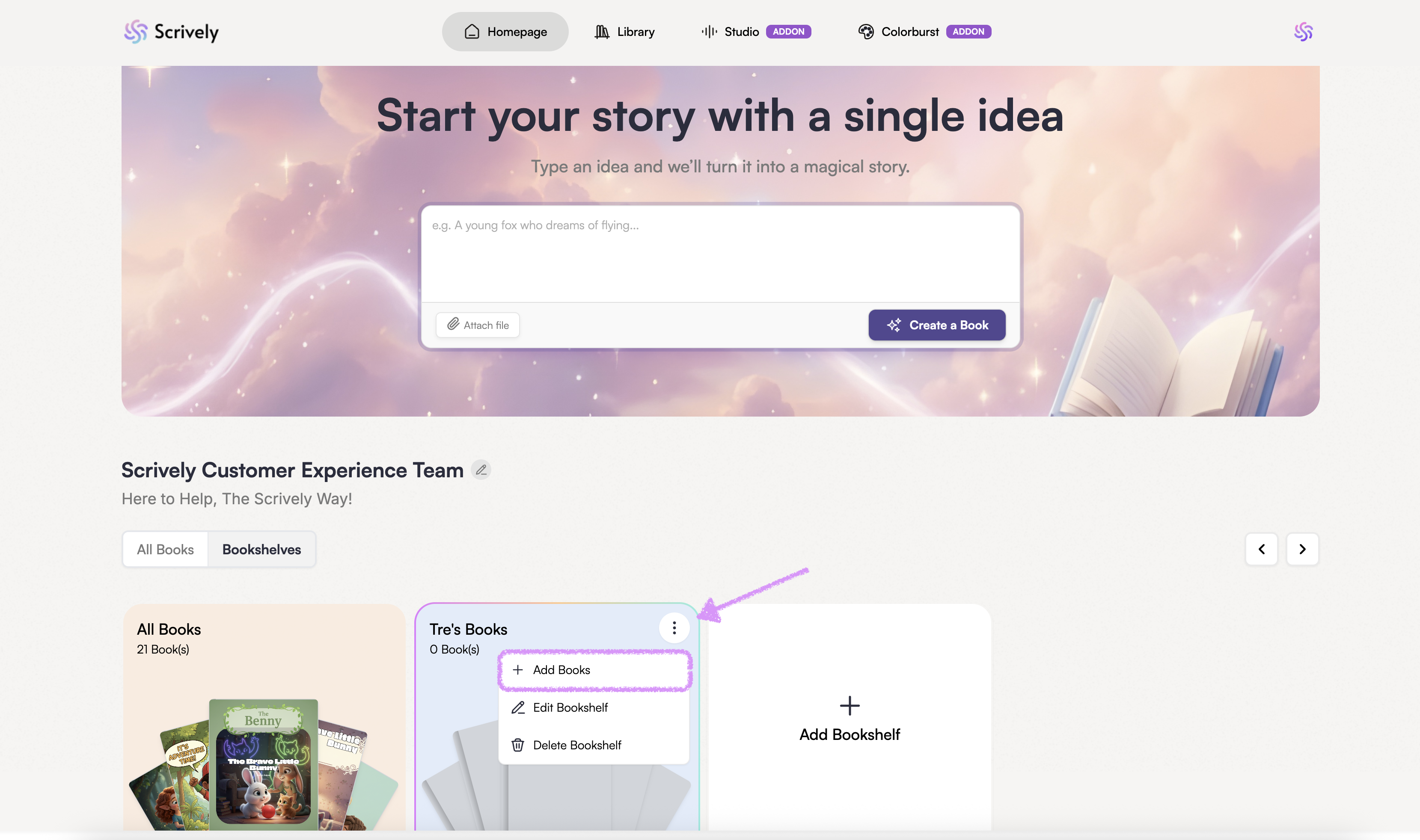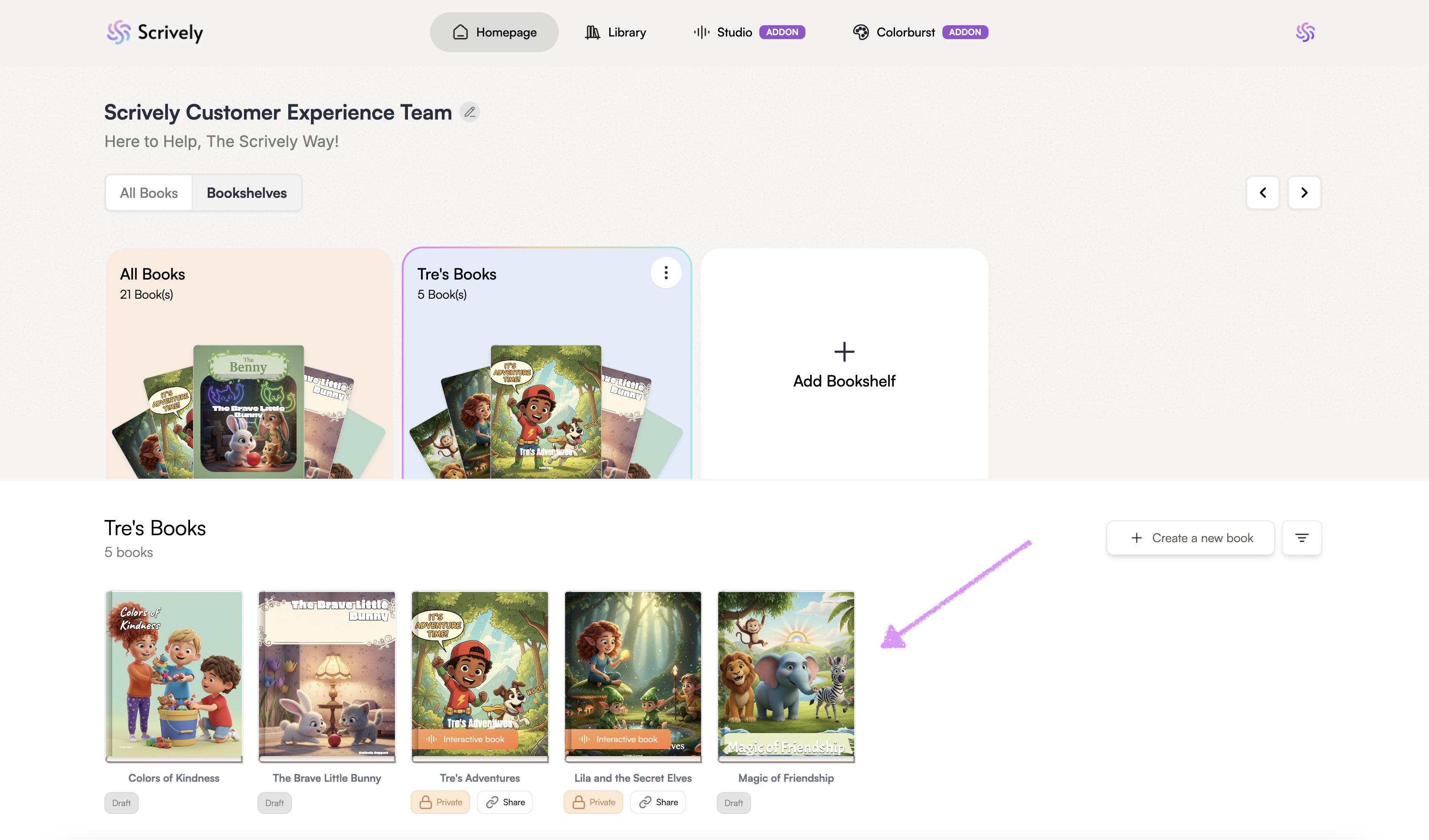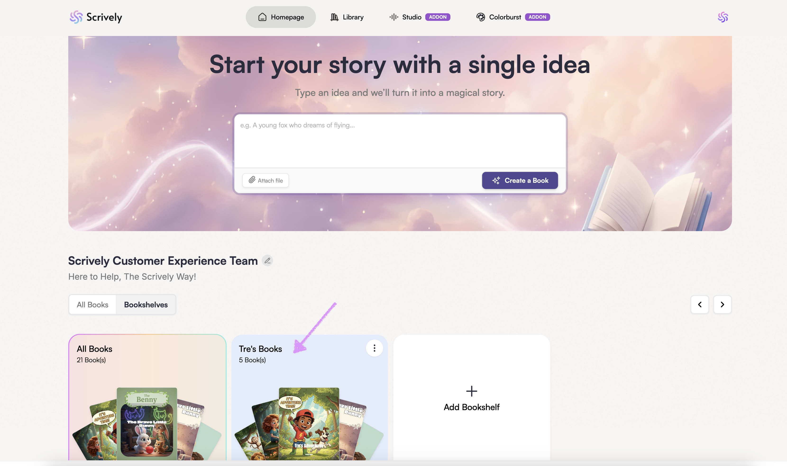 From your Scrively Homepage, navigate to and click on "Bookshelves."