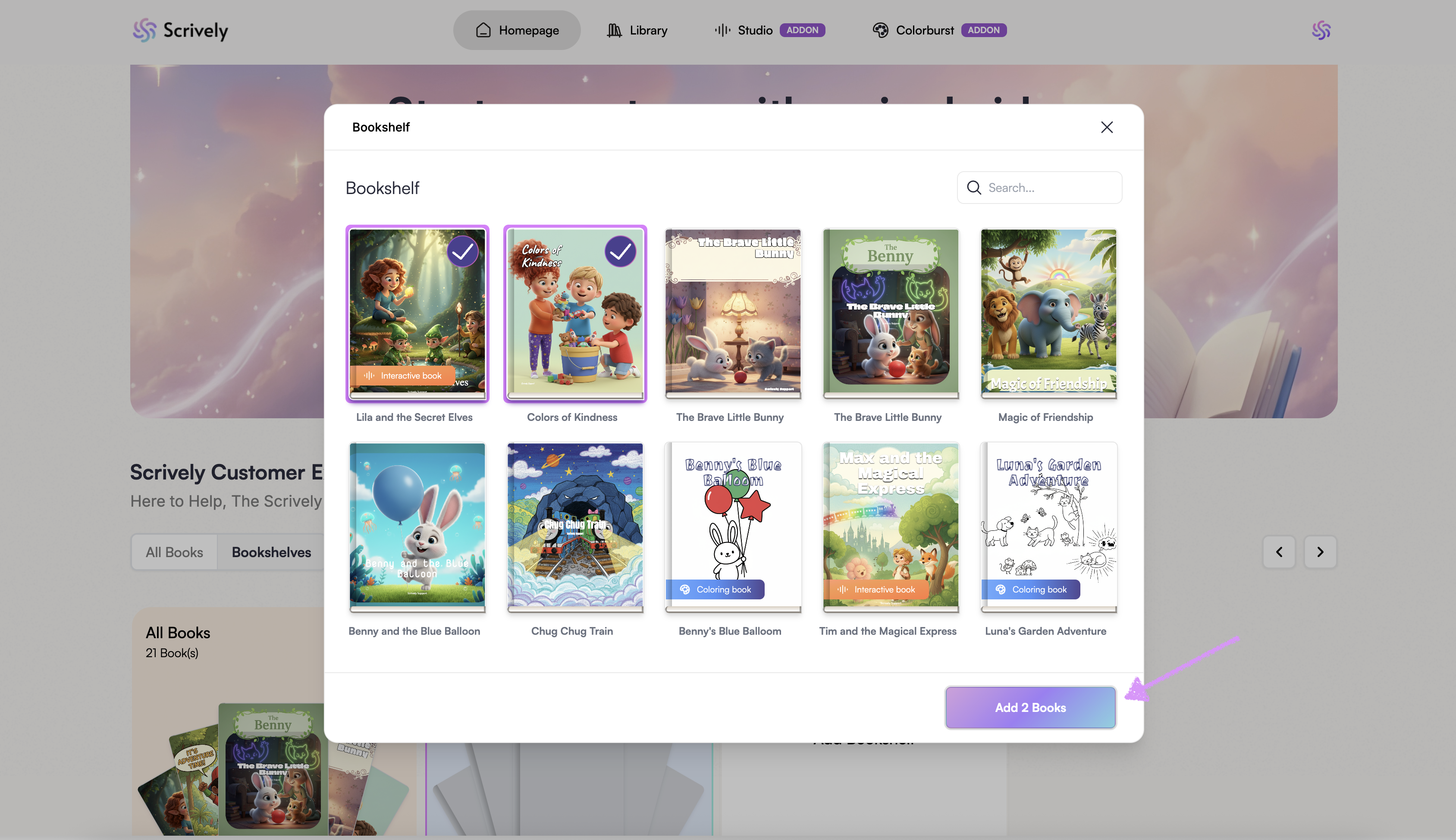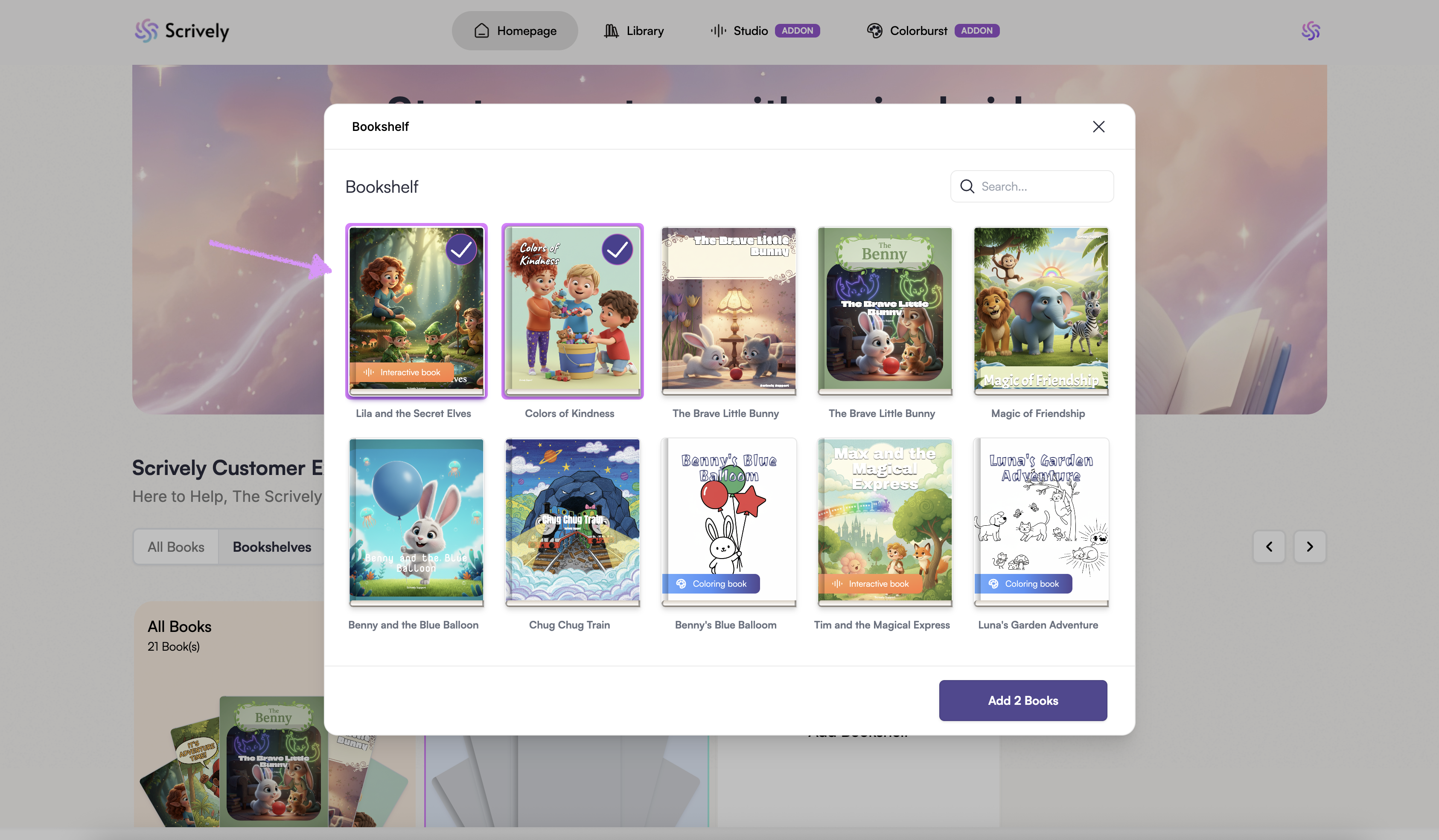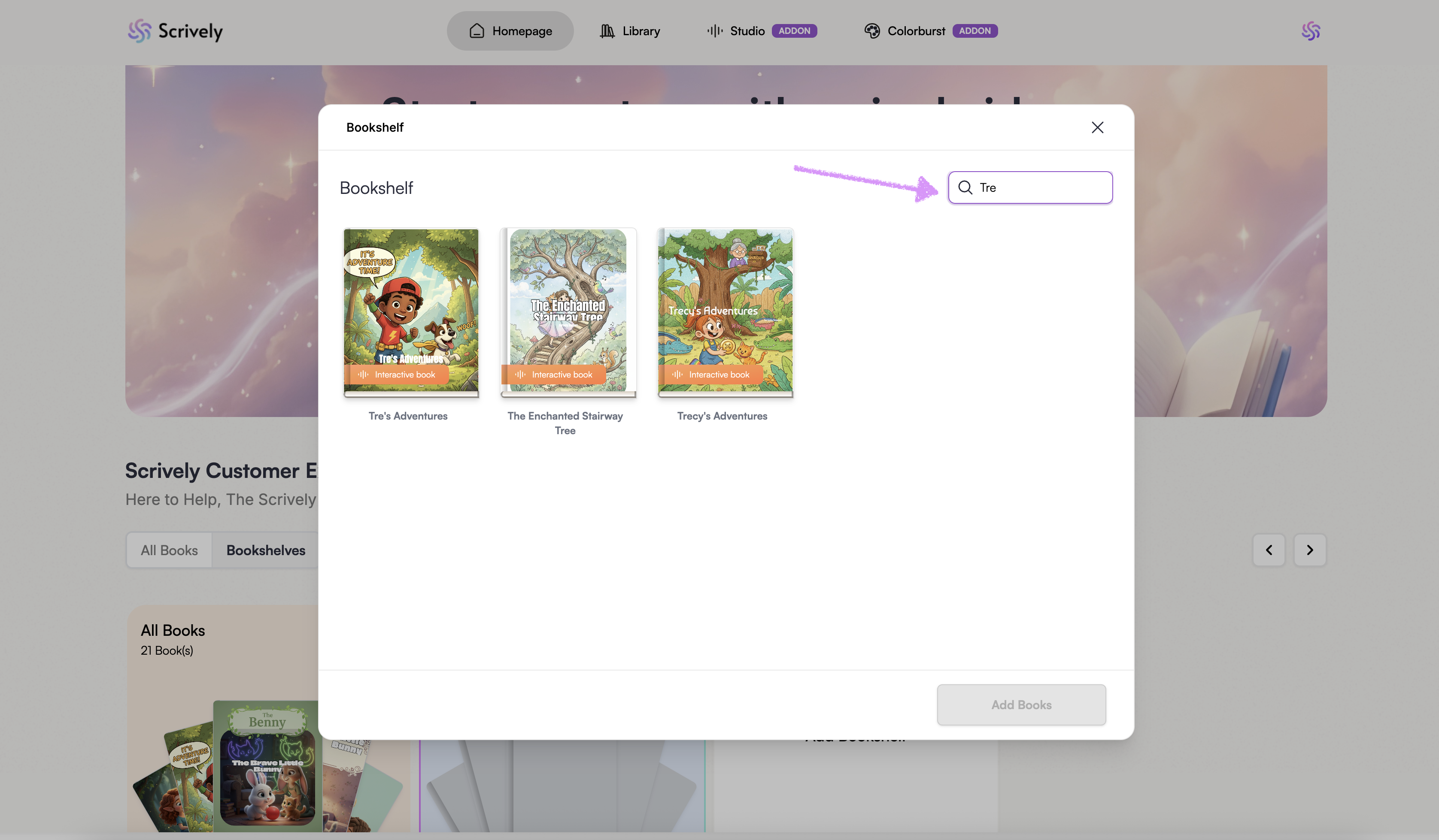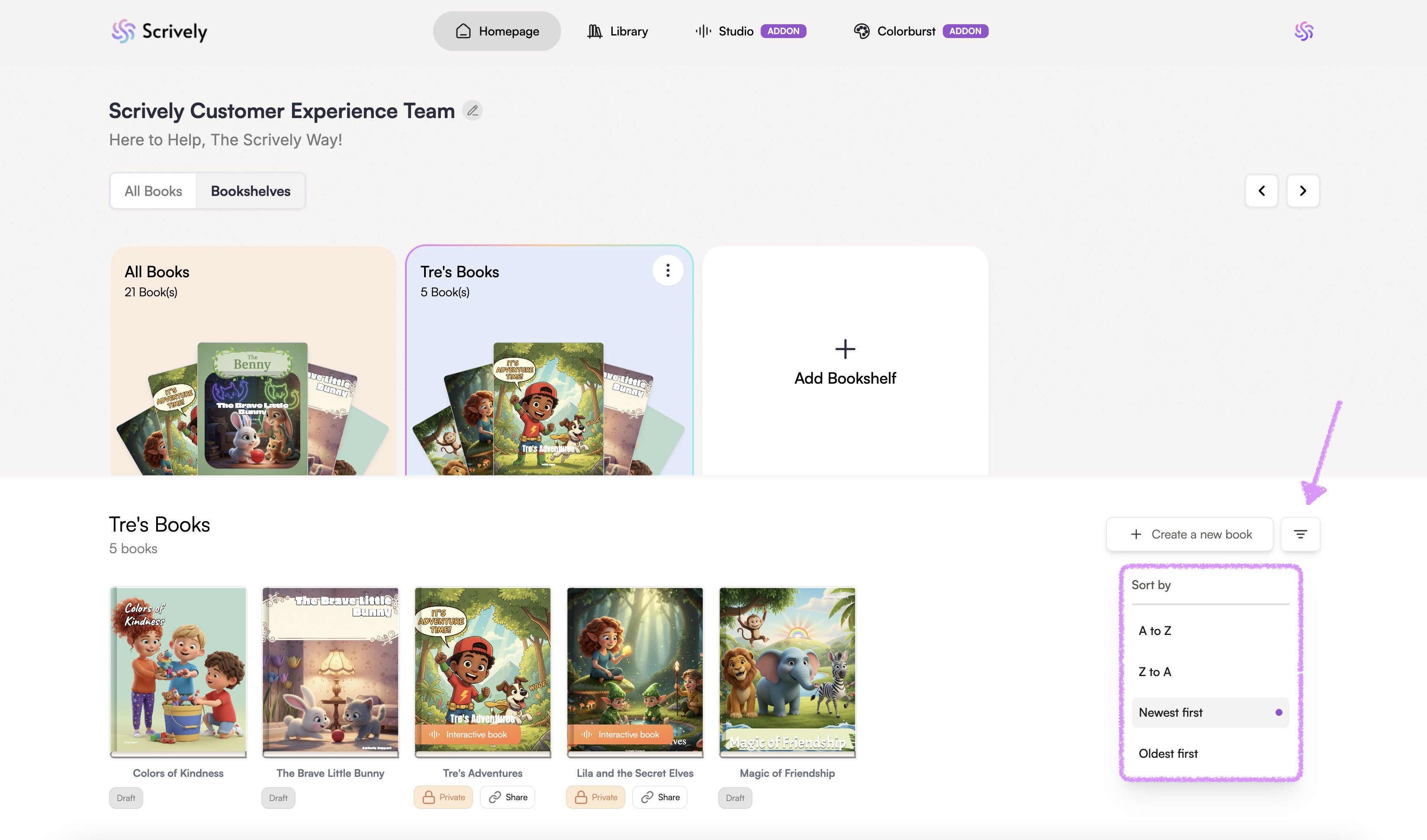 From your Scrively Homepage, navigate to and click on "Bookshelves."