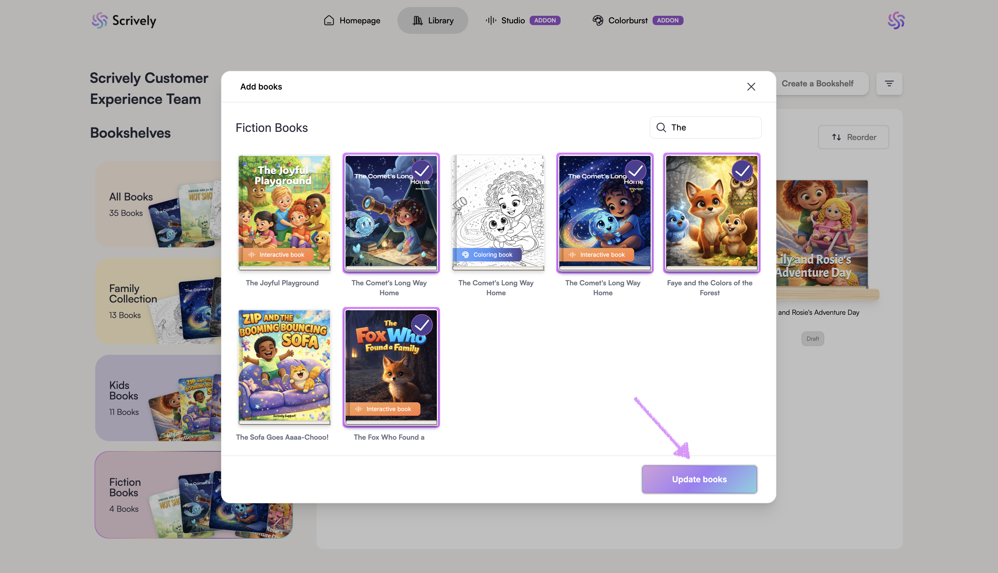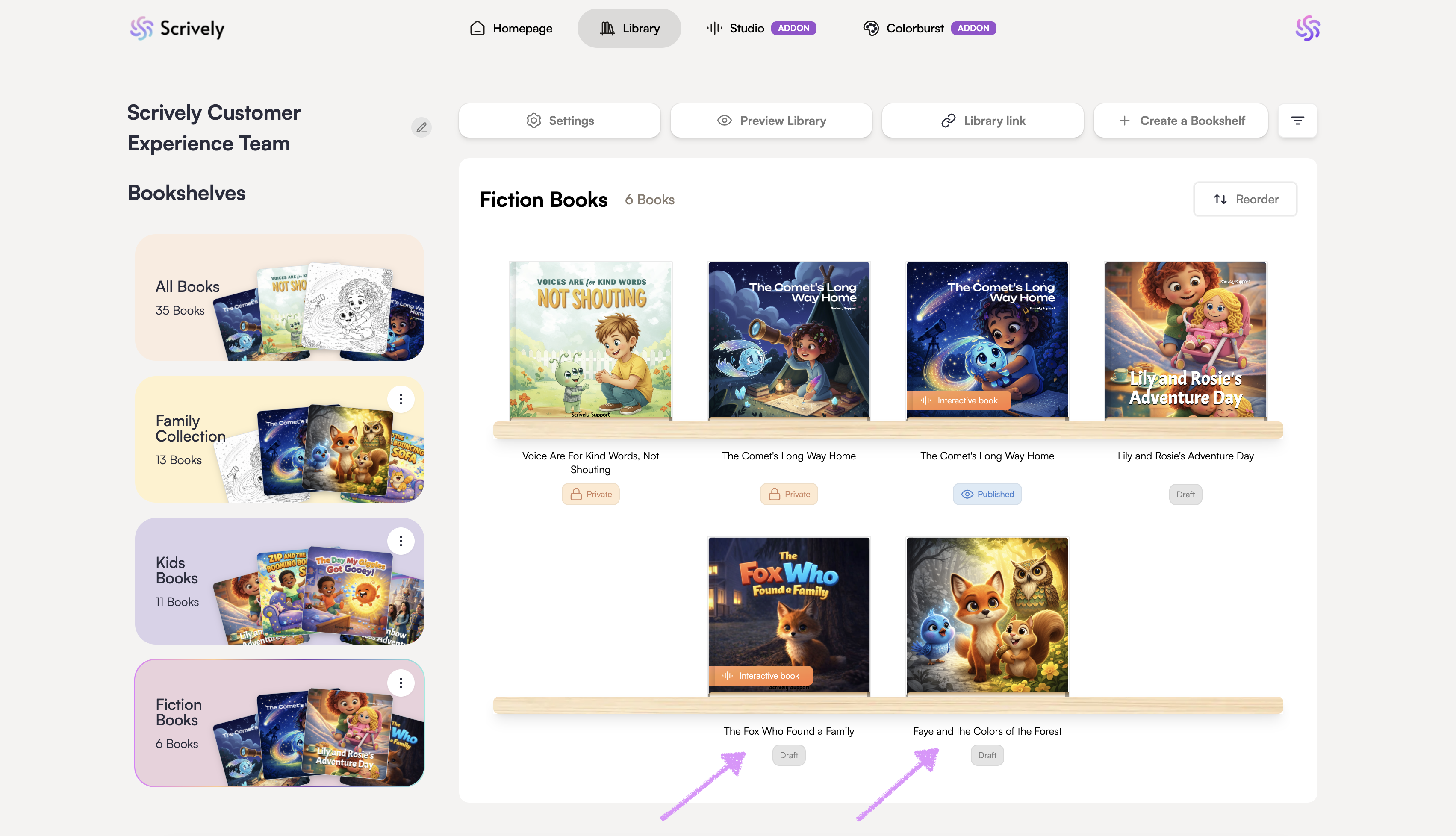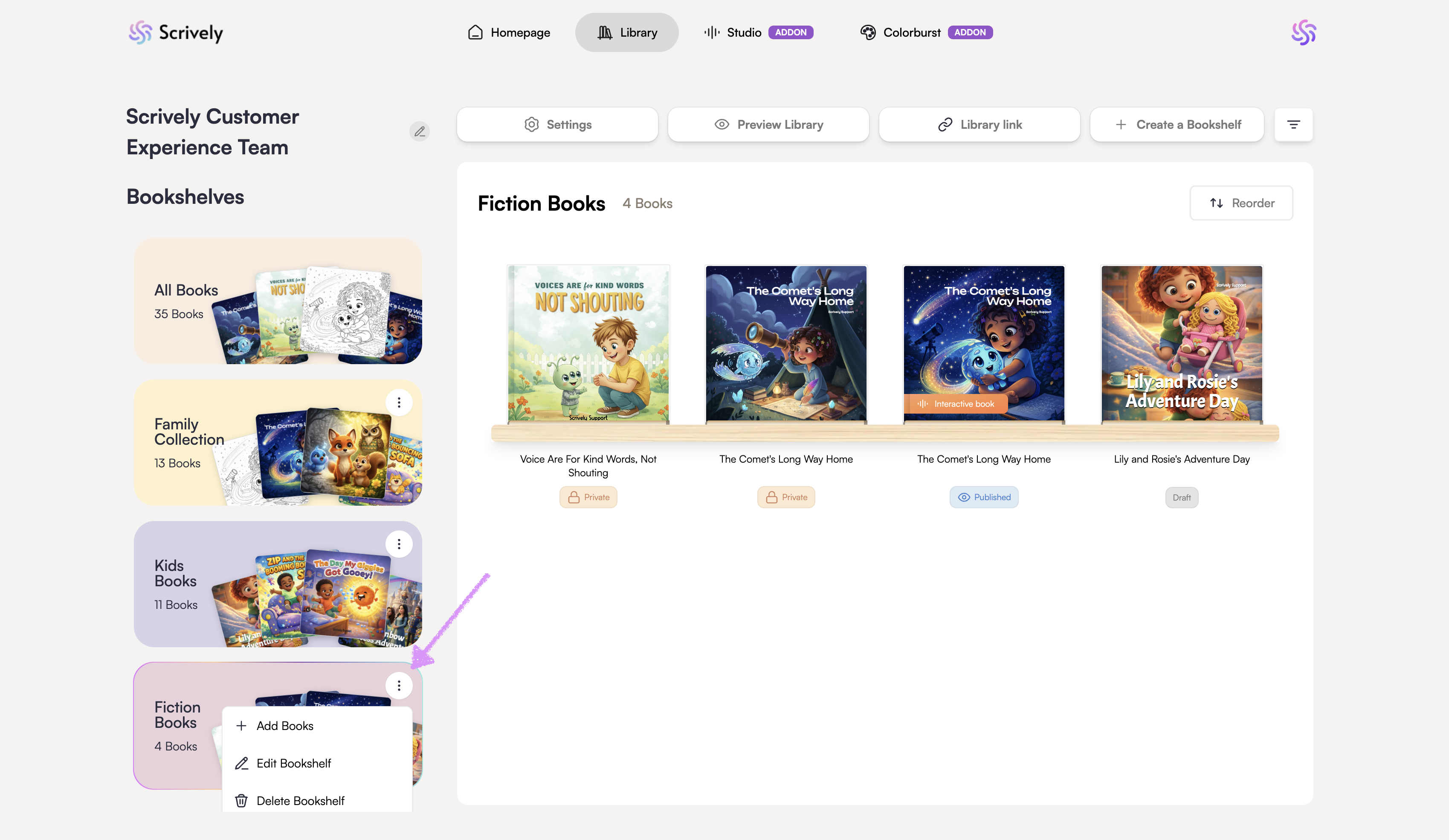 Once you’ve set up folders/bookshelves in Scrively, you can quickly move your books into them for better organization. This makes it easy to keep related projects together. With just a few clicks, your library will look cleaner and be easier to navigate.