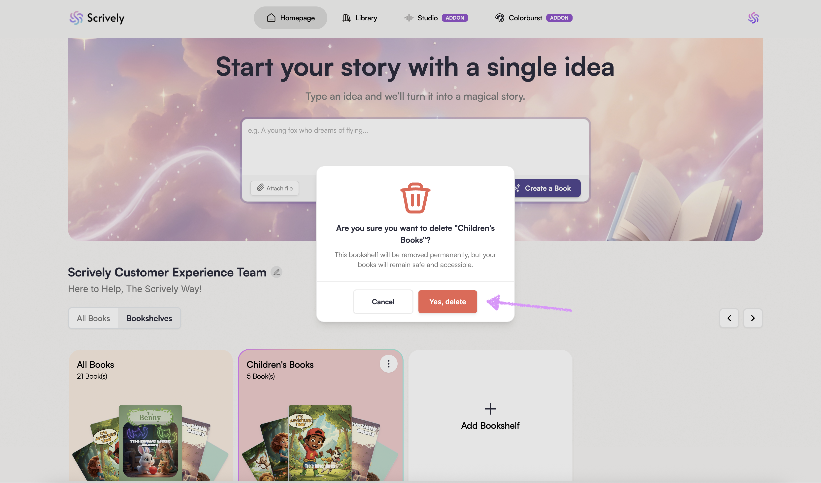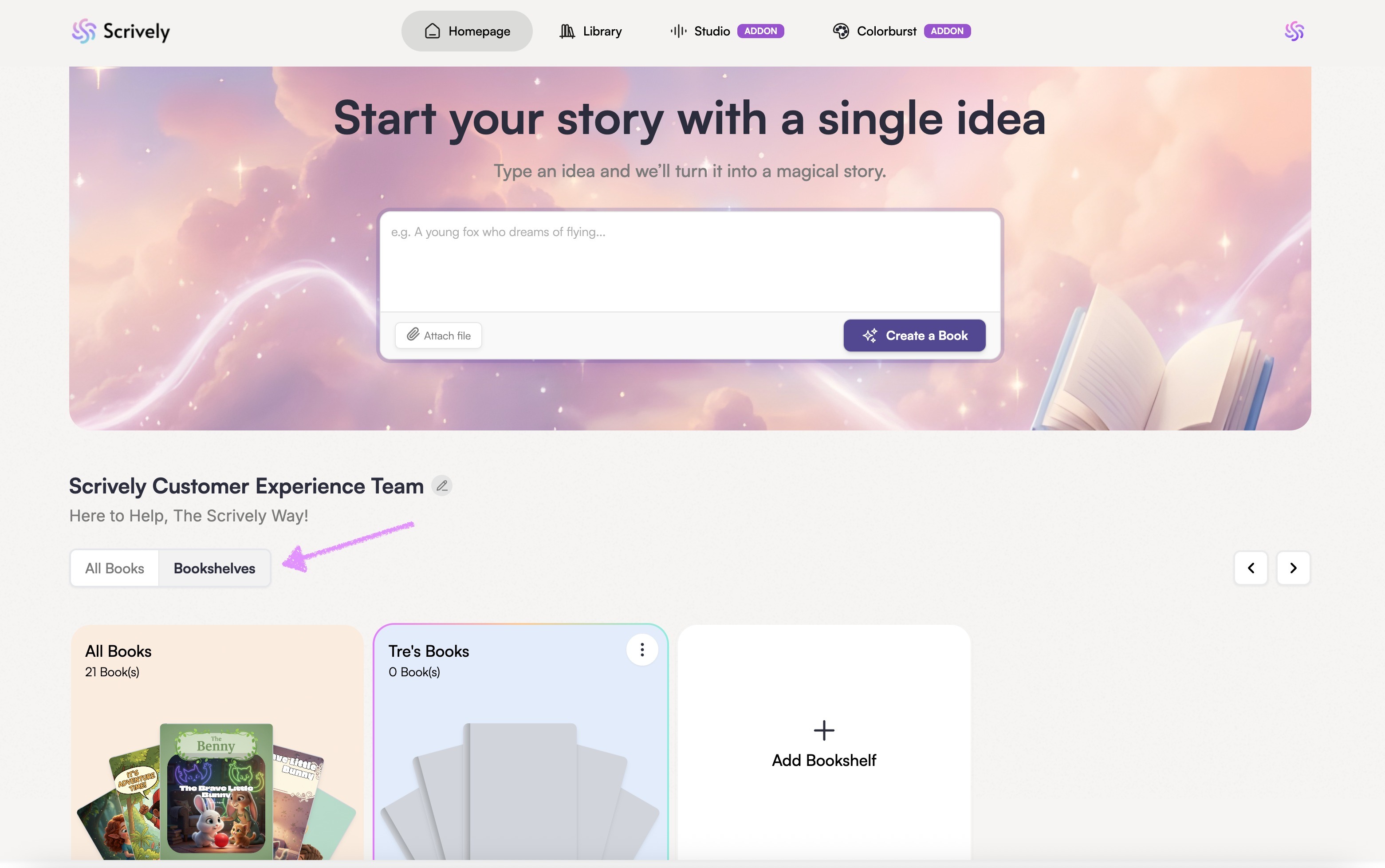 From your Scrively Homepage, navigate to and click on "Bookshelves."