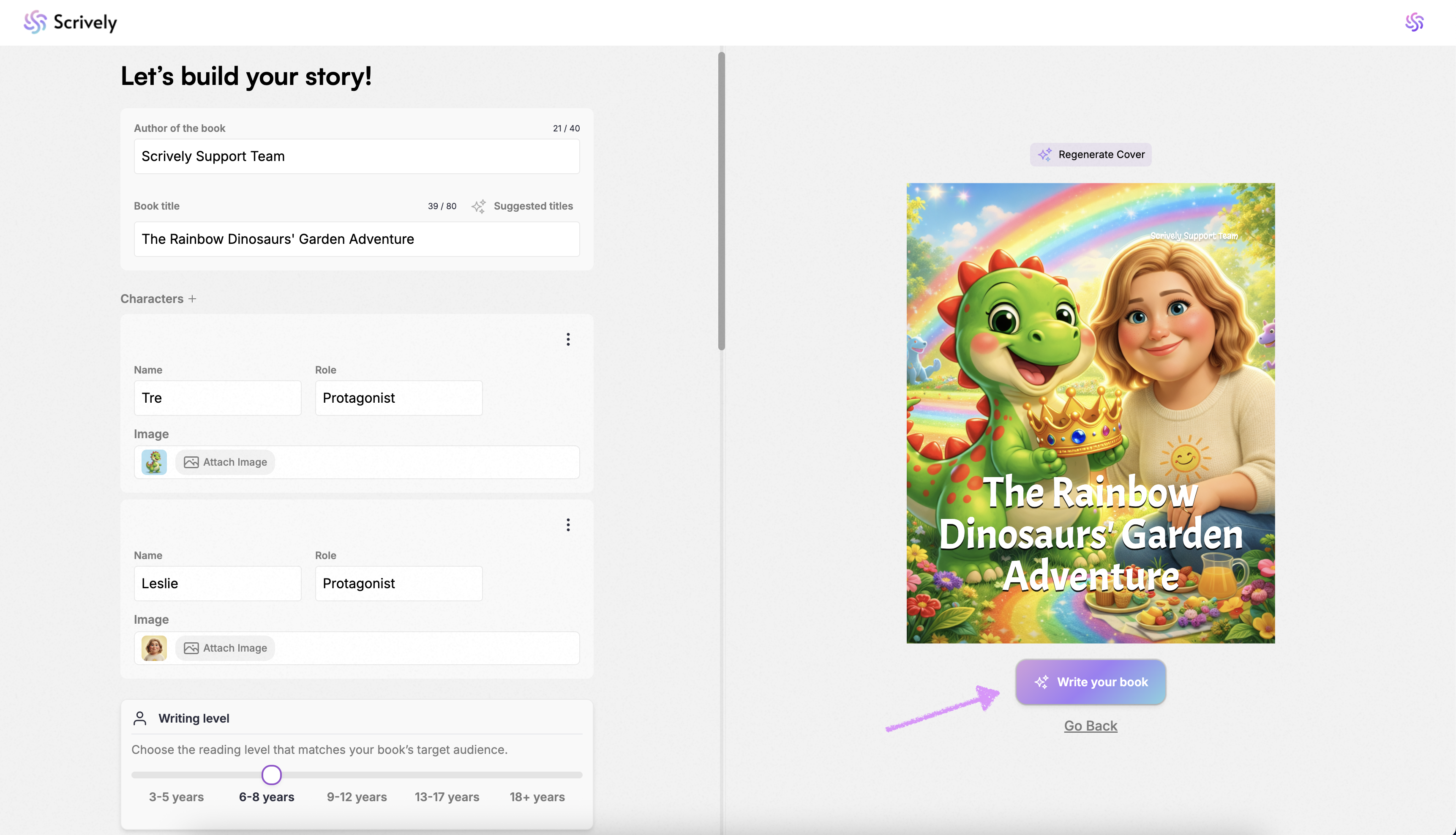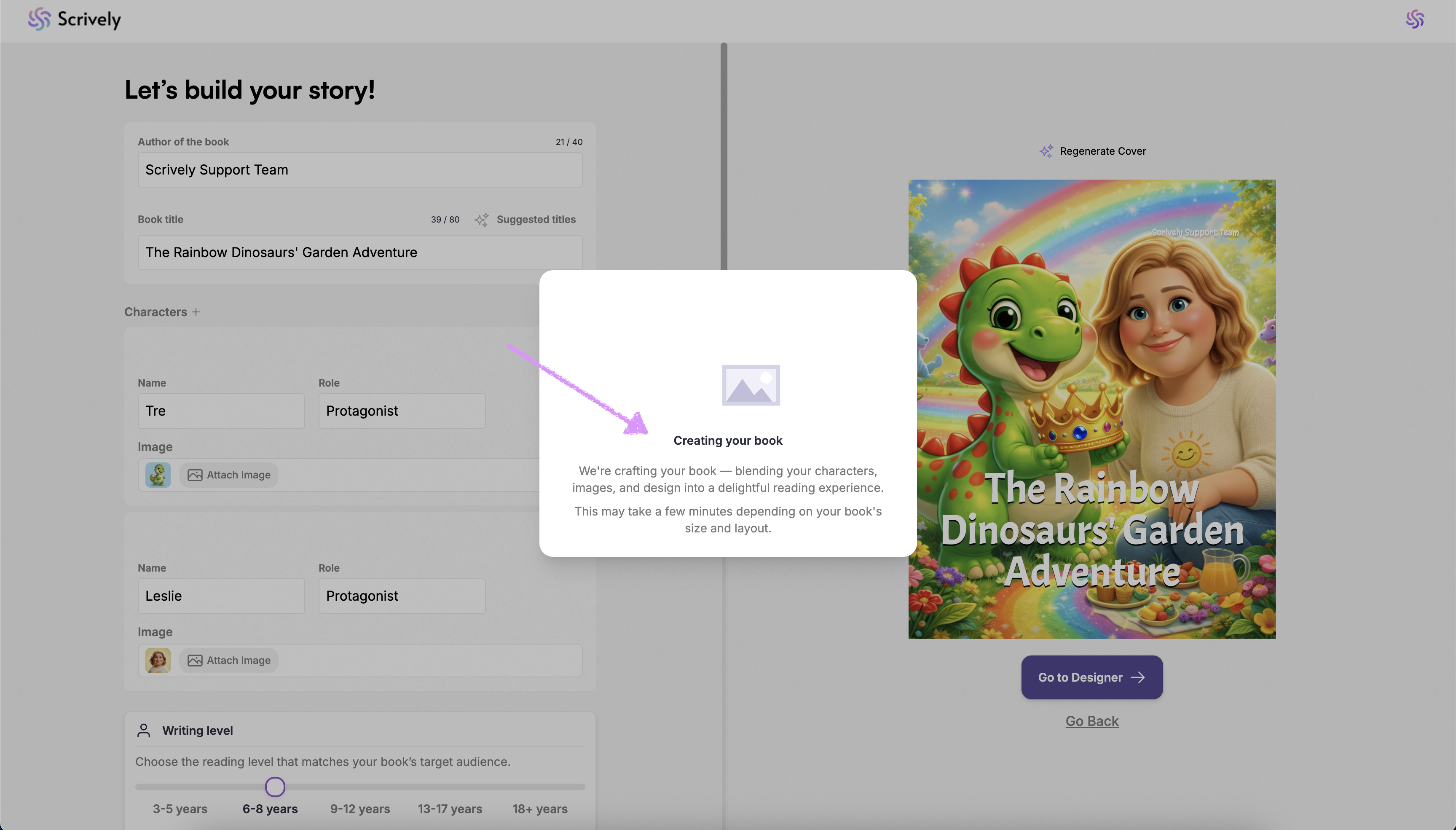 Scrively will create your book and you'll be taken to the Designer view. Check out our guide here on editing text in the Designer view.