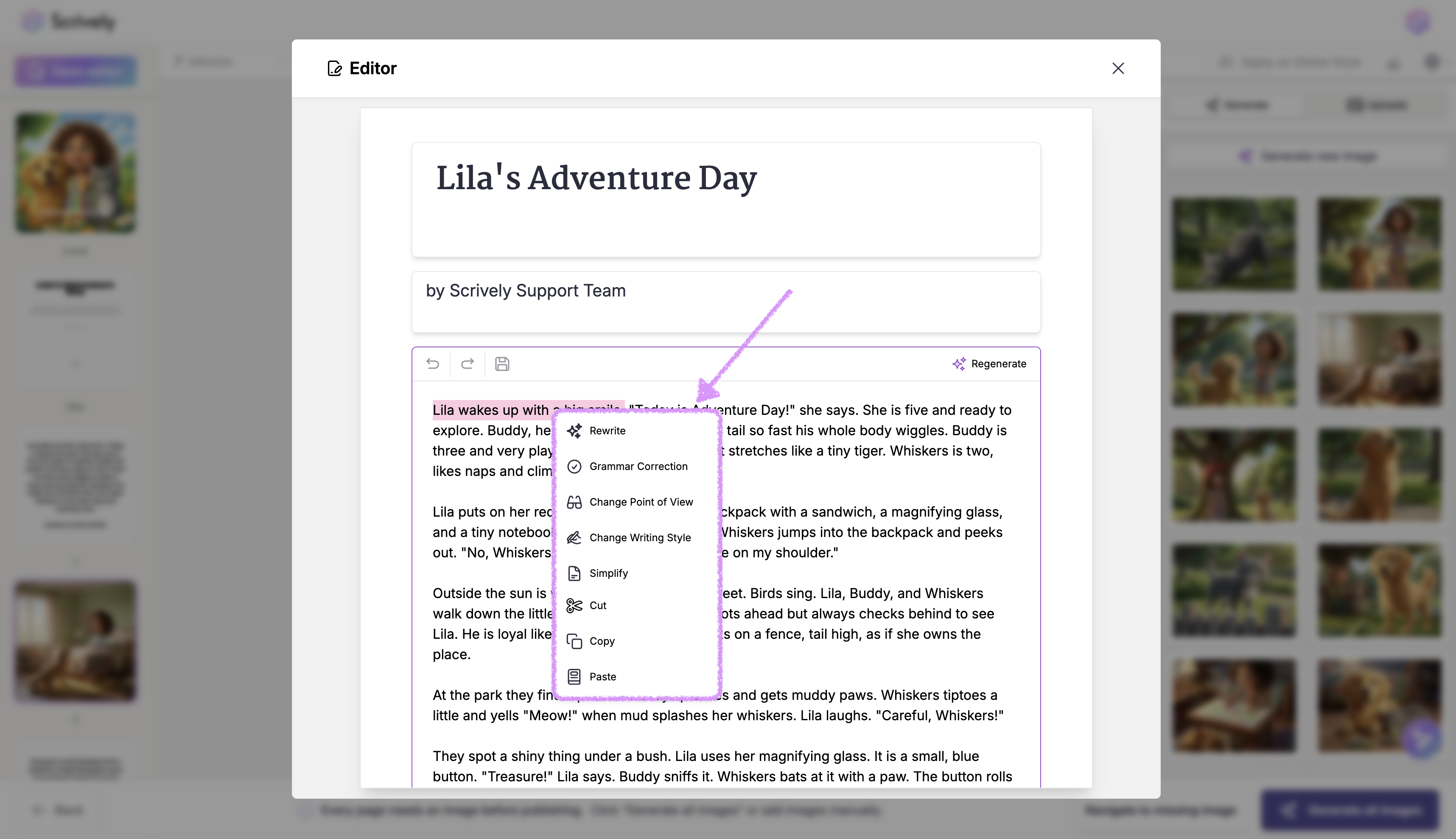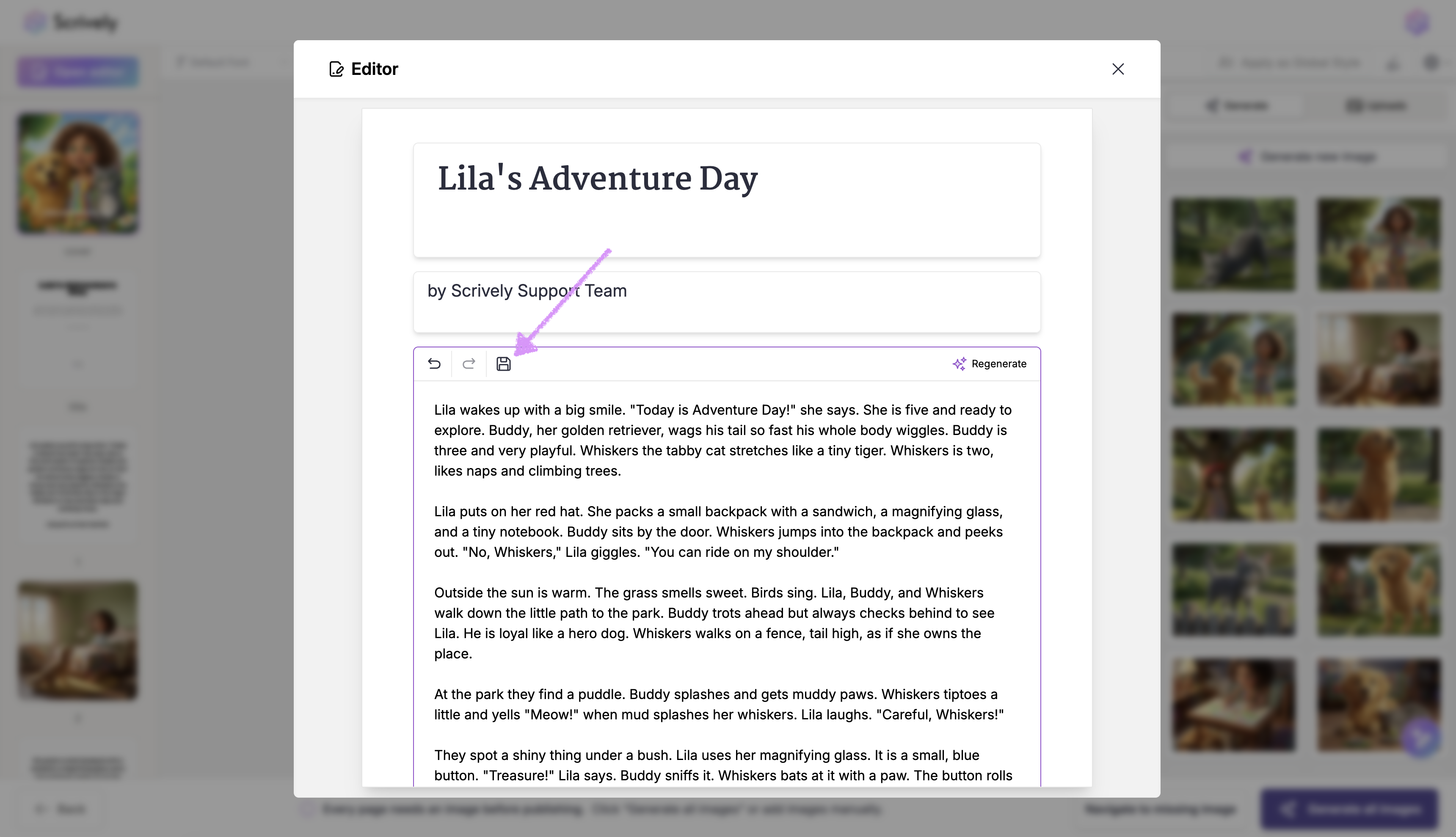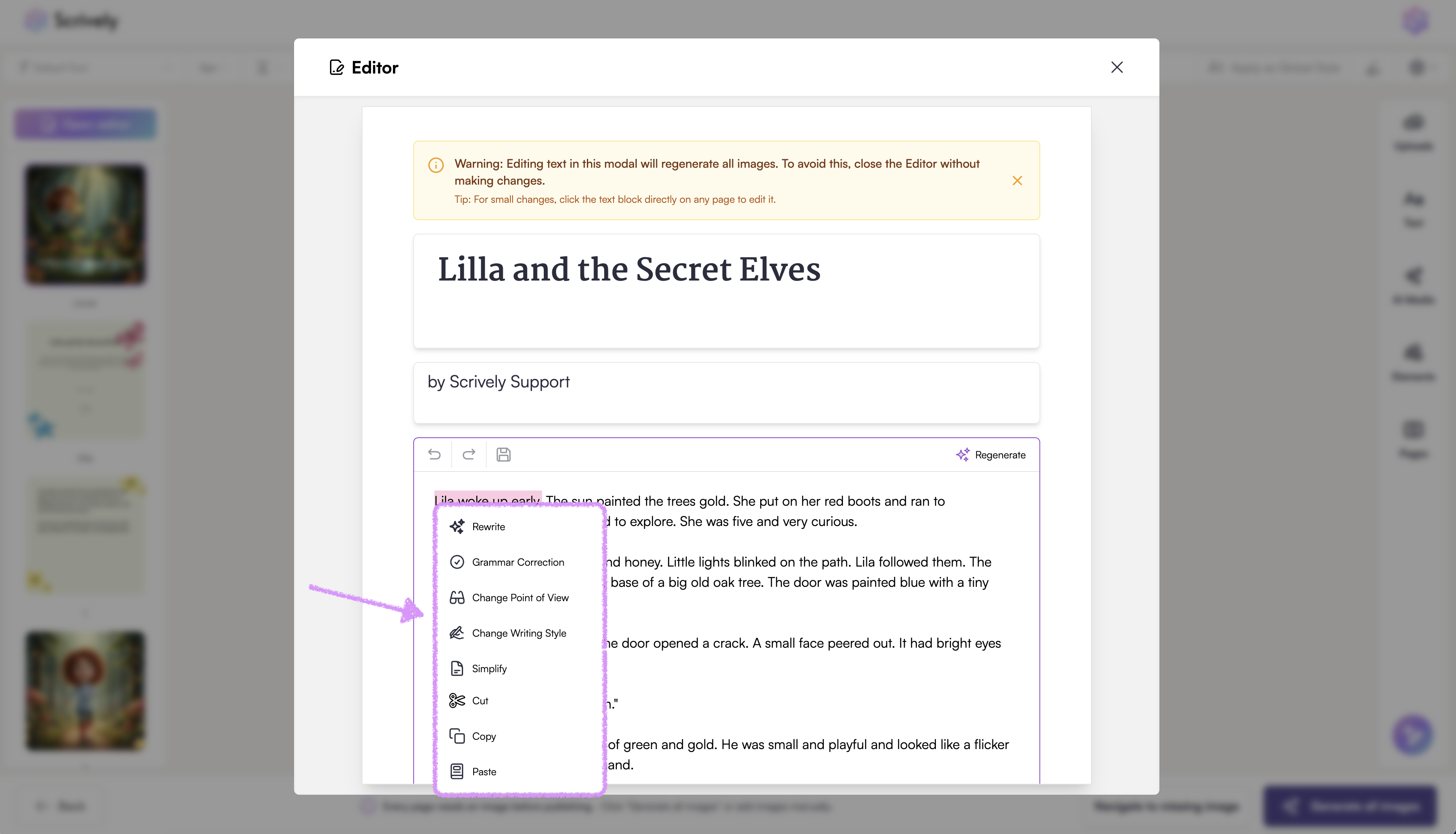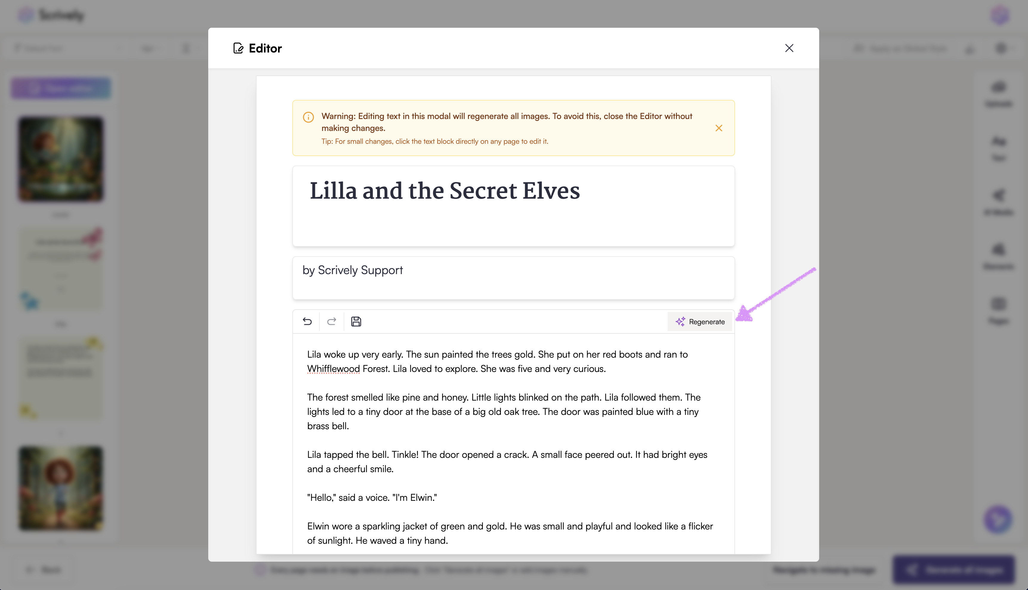 Not satisfied with the story? Select "Regenerate" to have Scrively create a new version for you.