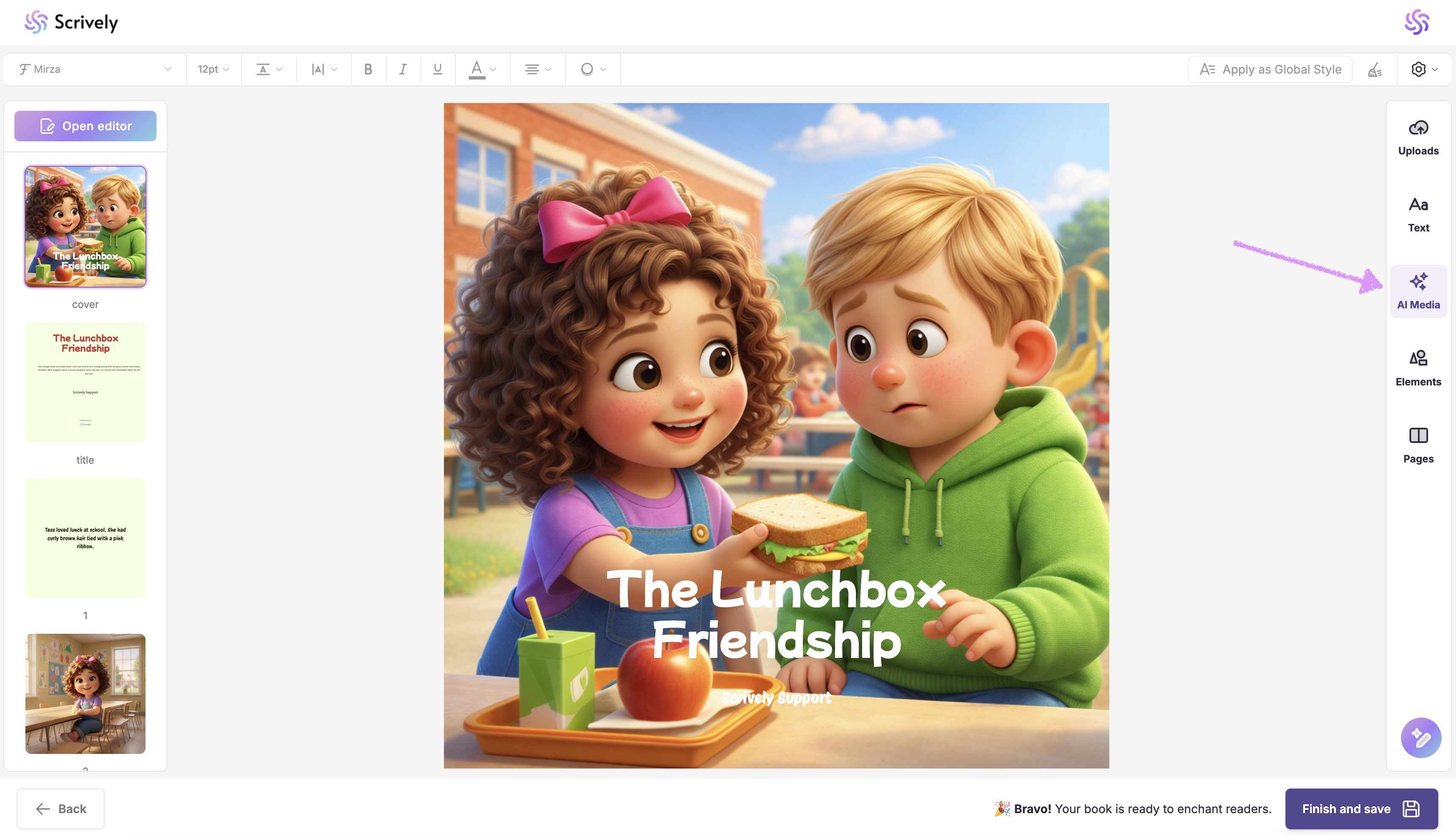 In the Designer (book layout view) click on "AI Media."