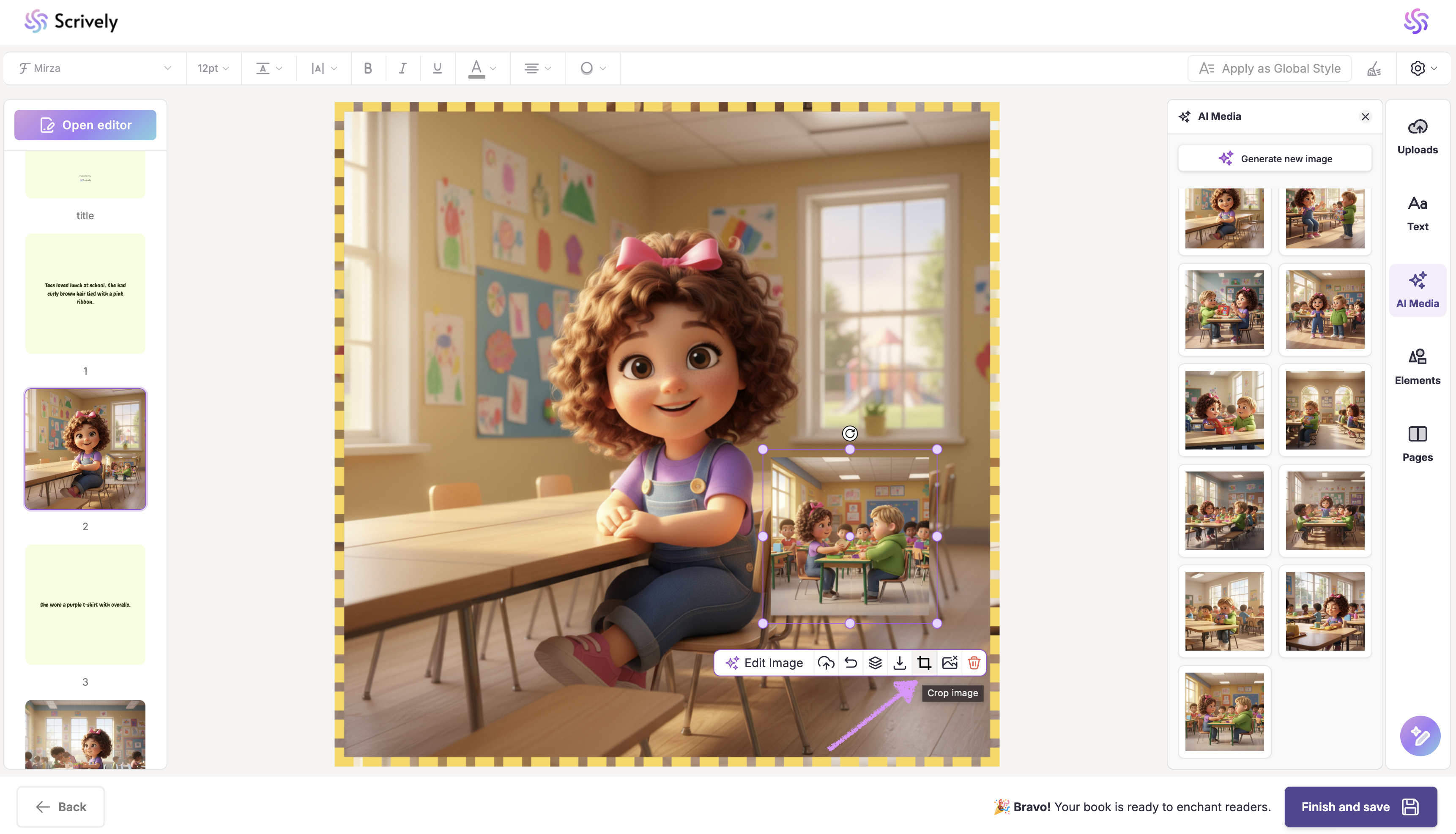 Cropping allows you to remove unwanted areas of an image so you can focus on the most important visual elements of your book. Whether you’re refining illustrations, adjusting photo layouts, or improving page composition, cropping helps ensure your images fit seamlessly into your design.