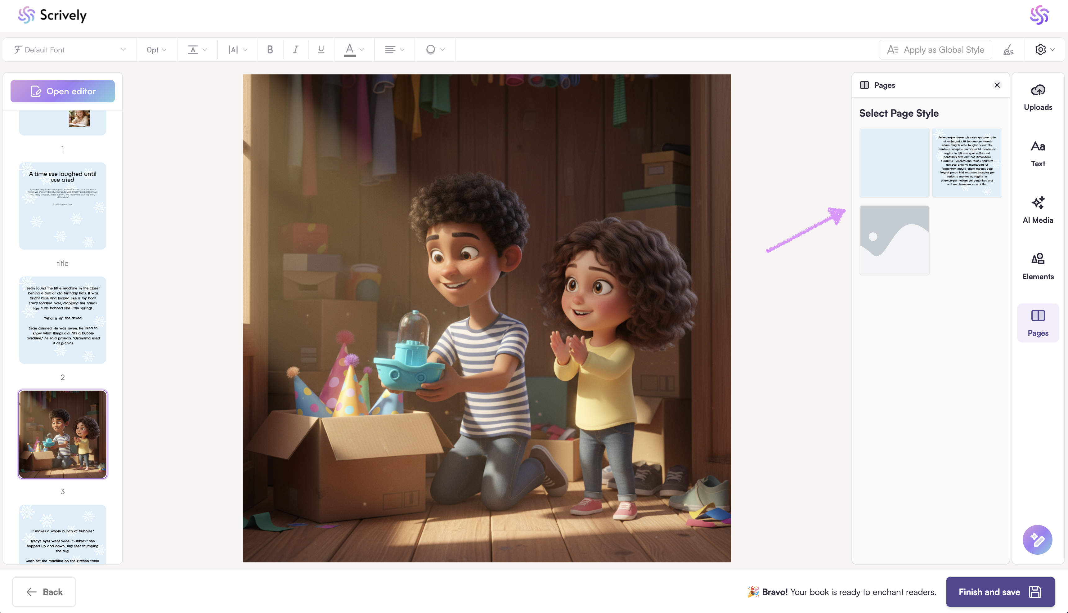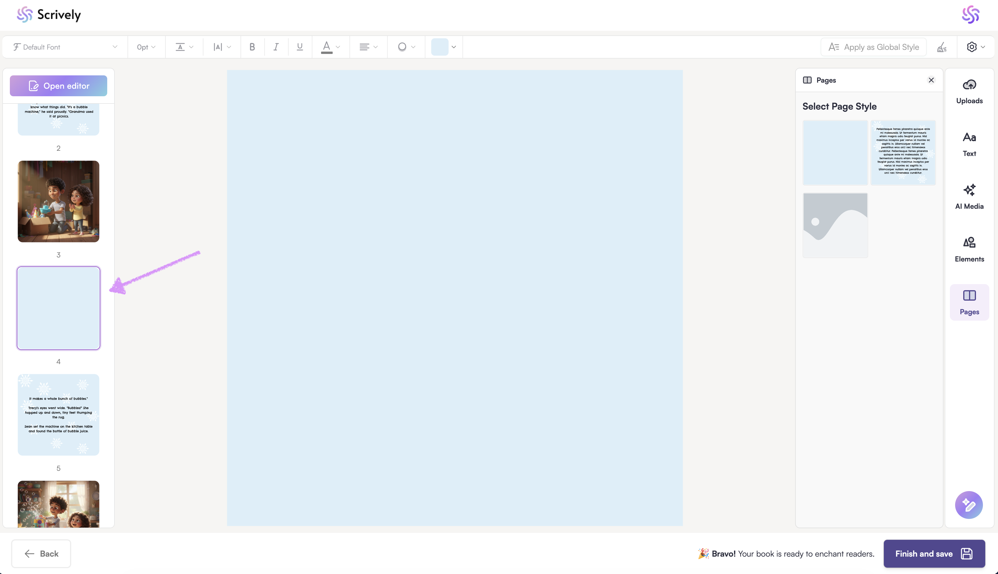 The new page will be added directly below the page you’re currently viewing, so you can continue building your layout in the exact order you want. This gives you full creative control over the structure of your book, making it easy to organize your content, add images, text, or design elements, and create a smooth flow from one page to the next.