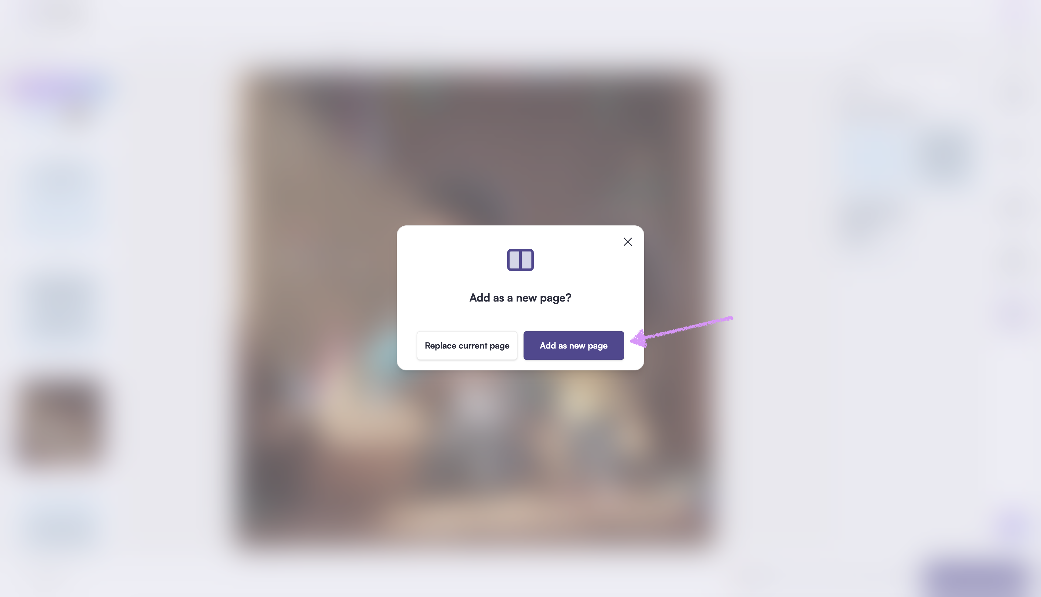 You’ll have two options when adding a page: replace the current page or add it as a new page. If you choose to replace, the current page design will be removed and updated with the new layout. If you add it as a new page, your existing content will stay the same and the new page will appear below it. This is a great option if you want to try new layouts or continue building your book while keeping what you’ve already created. In this example, we’ll add it as a new page.