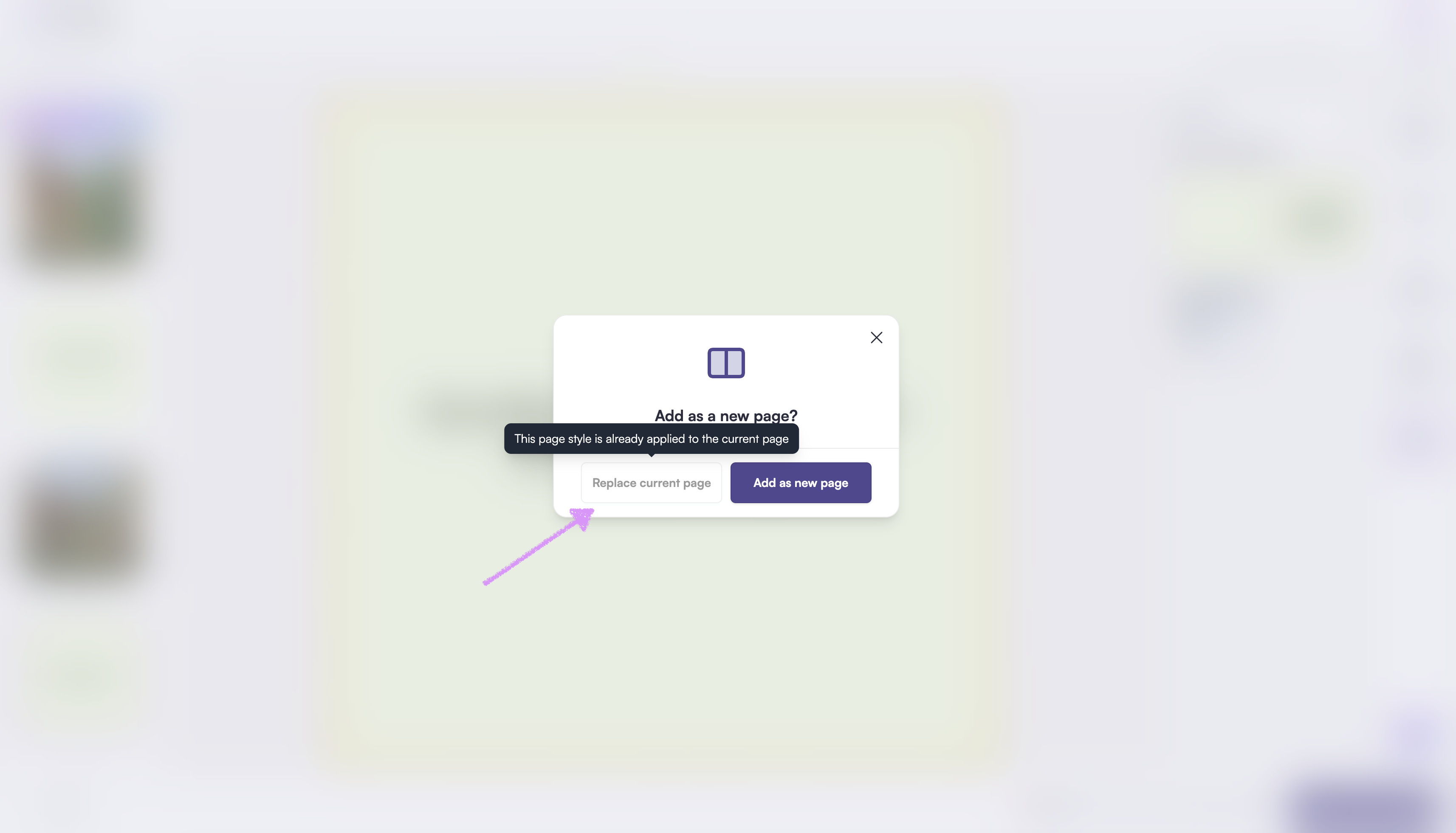 Note: If a page style is already applied to the page you're on you won't be able to replace the current page.
